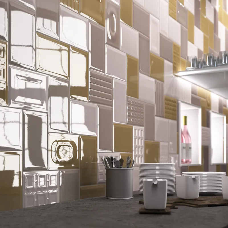 Итальянская, глянцевая плитка Cacao Va Mix 12*18 прямоугольной формы,