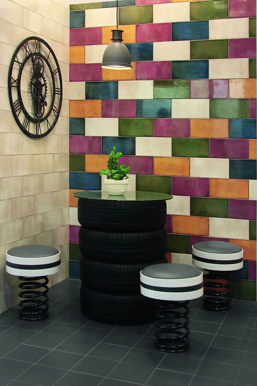 размера 30x15, фиолетового цвета. Данный вид плитки, имитирующий камень,