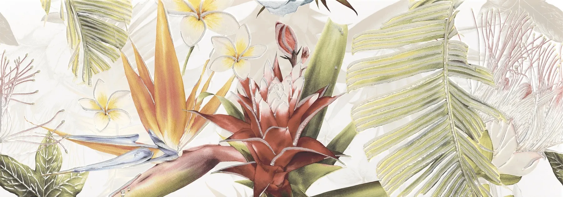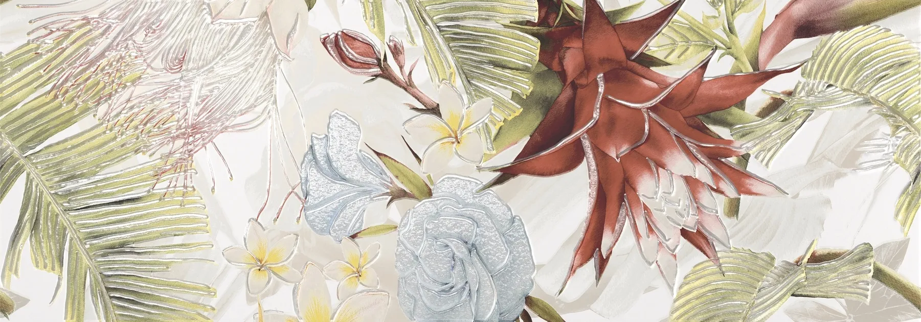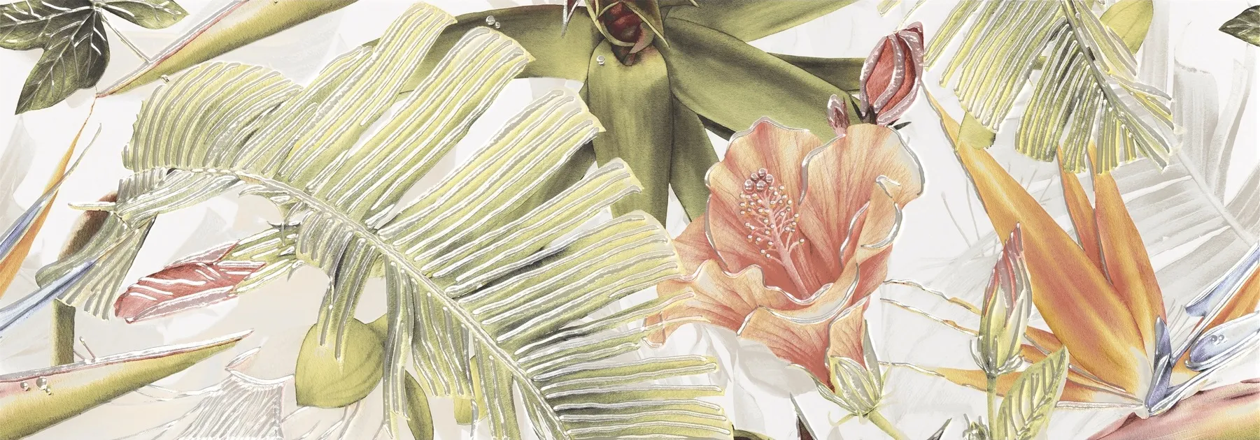 размера 100x35, зелёного цвета. Данный вид плитки, с цветочным рисунком,