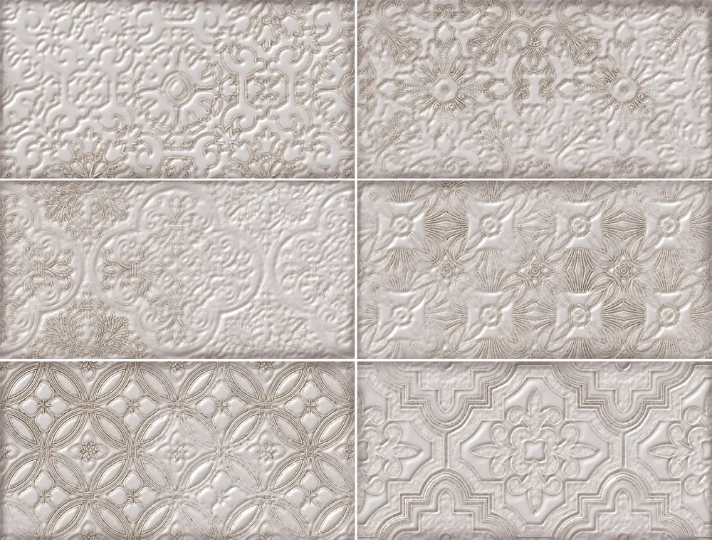 Испанская, глянцевая плитка DANTE Decor Light Grey mix 12x24 прямоугольной формы,