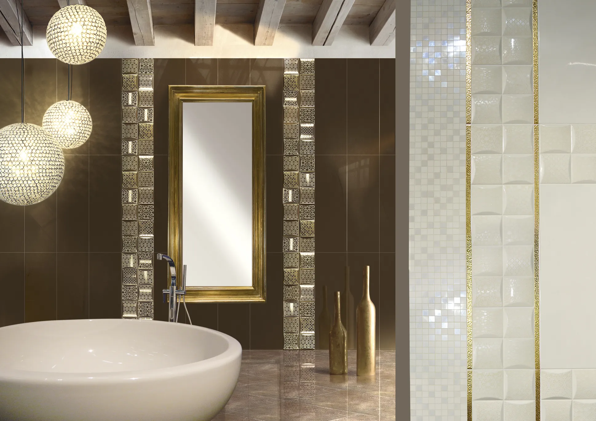 размера 75x25, кремового цвета. Данный вид плитки, имитирующий мозаику,