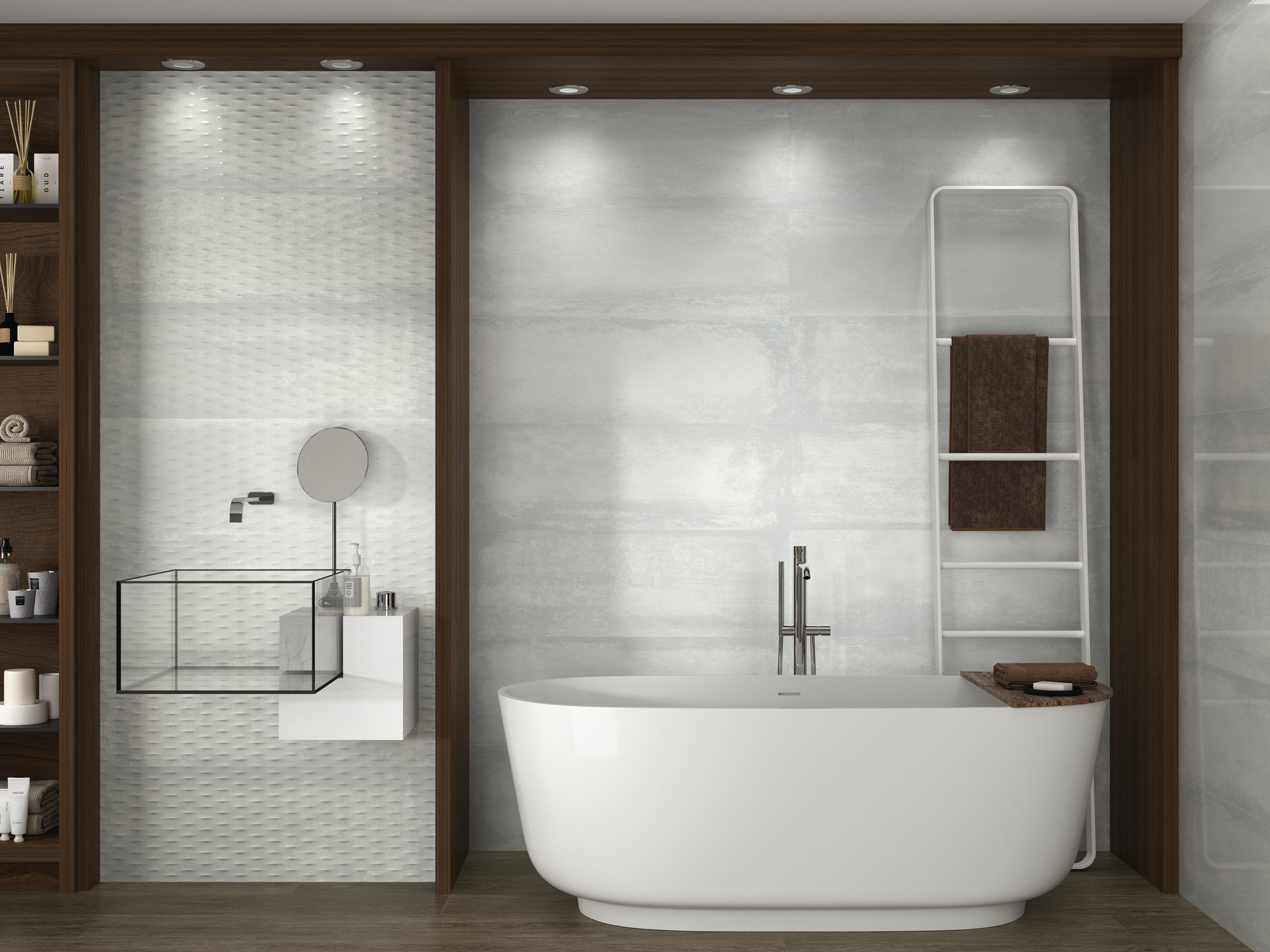 Испанская, глянцевая плитка DEC ZIG ZAG GREY 30*90 прямоугольной формы,