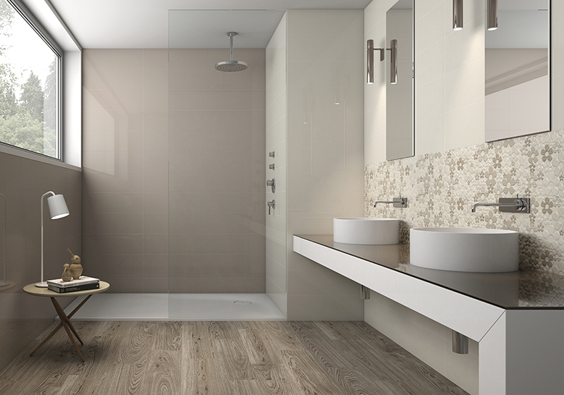 Испанская, глянцевая плитка Decor Daisy Beige 20x60 прямоугольной формы,