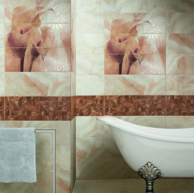размера 25x75, бежевого цвета. Данный вид плитки, с цветочным рисунком,