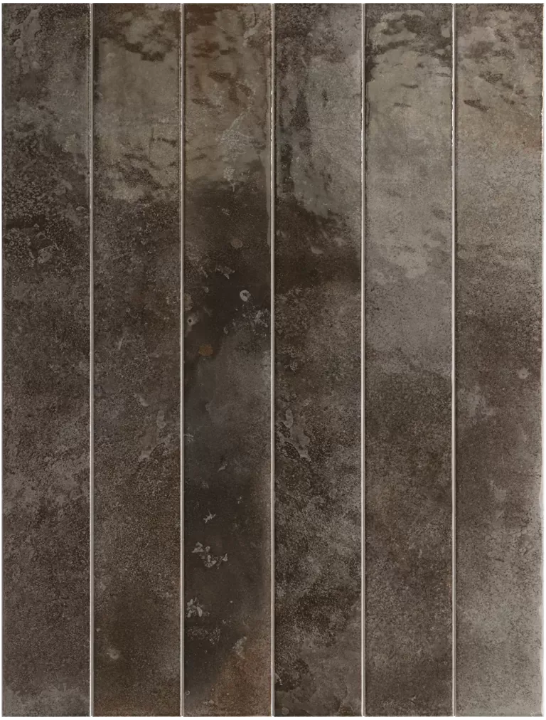 Испанская, глянцевая плитка 31549 Bali Black Hat 5x40 прямоугольной формы, размера 5x40, коричневого цвета. Данный вид плитки, имитирующий камень, подойдет для стены Вашей ванной.