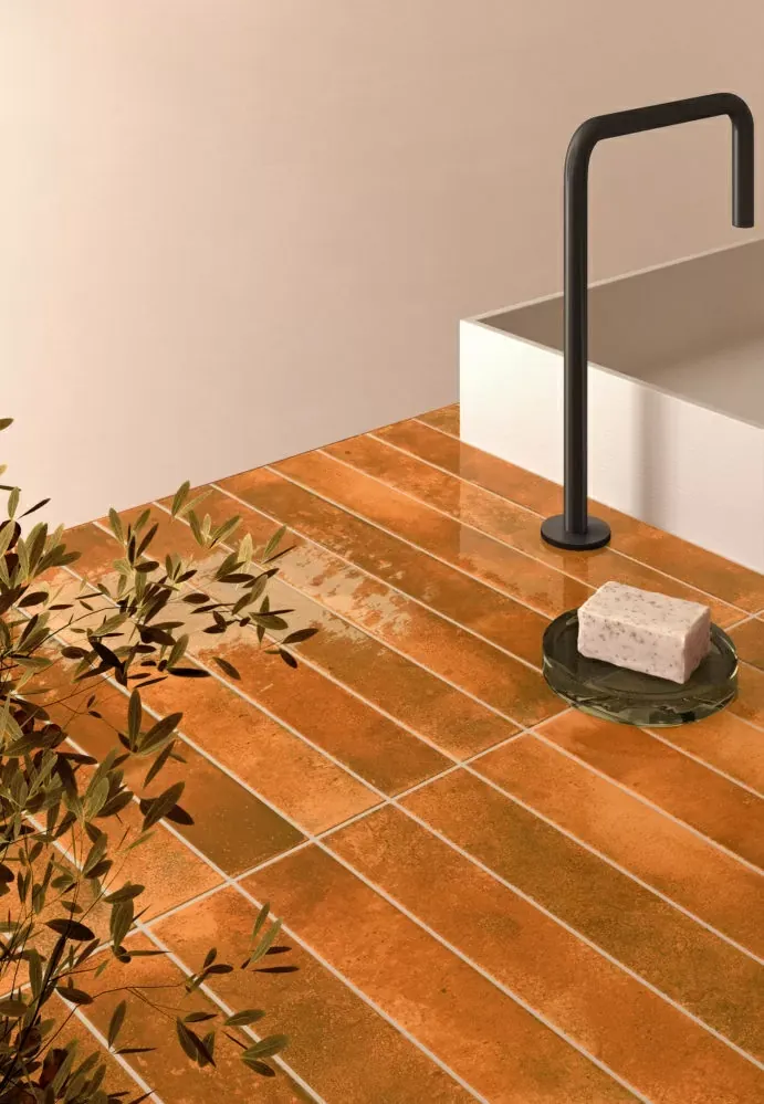 Испанская, глянцевая плитка 31551 Bali Ginger 5x40 прямоугольной формы, размера 5x40, оранжевого цвета. Данный вид плитки, имитирующий камень, подойдет для стены Вашей ванной.