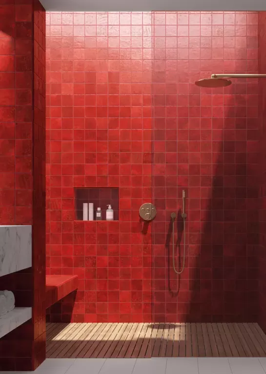 Испанская, глянцевая плитка 31622 Menorca Volcano 10x10 квадратной формы, размера 10x10, красного цвета. Данный вид плитки, одноцветной, подойдет для стены Вашей ванной.