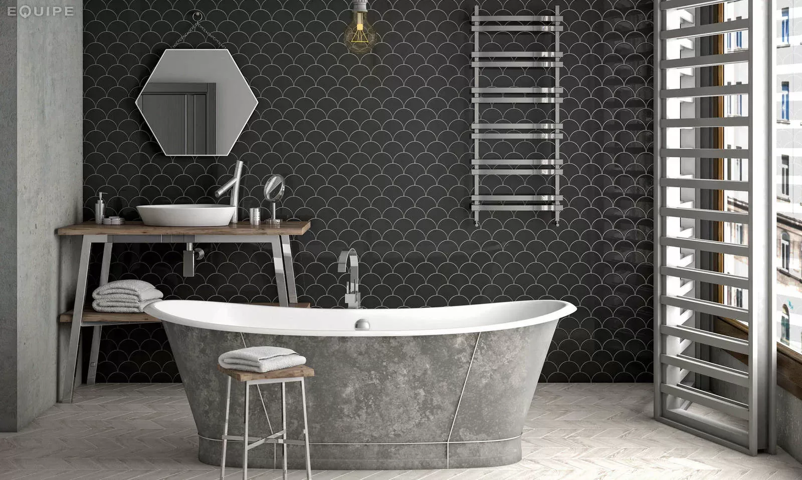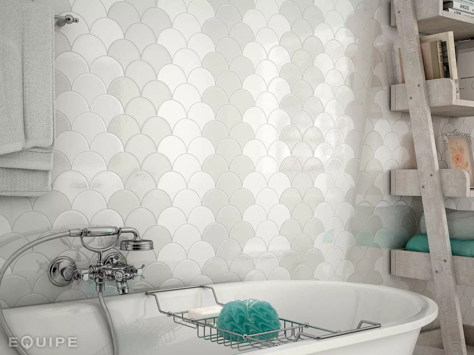 Испанская, глянцевая плитка 21912 HEXAGON SCALE Wall Light Grey 10,7x12,4 прямоугольной формы, размера 10.7x12.4, серого цвета. Данный вид плитки, одноцветной, подойдет для стены Вашей ванной.
