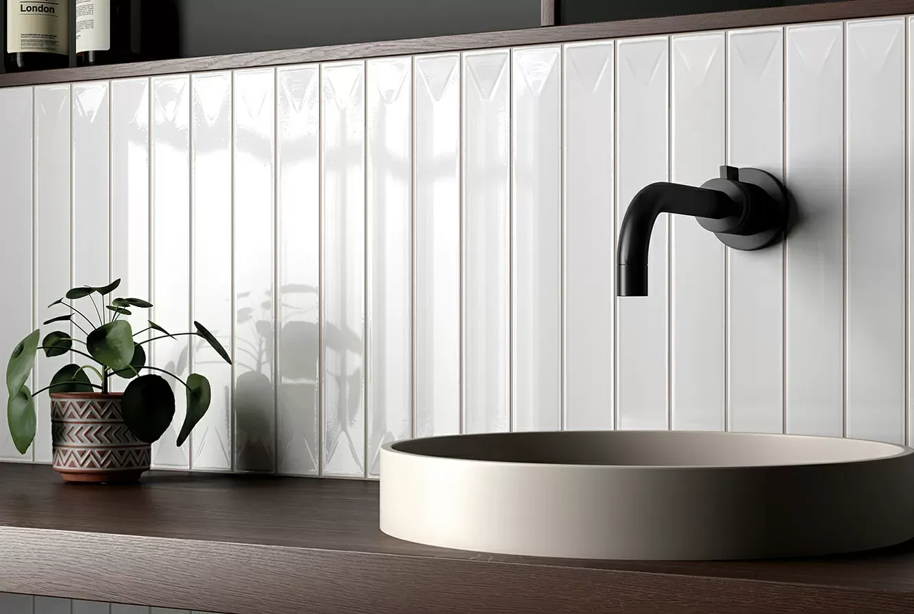 Испанская, глянцевая плитка 31140 Vitral Snow 5x40 прямоугольной формы, размера 5x40, белого цвета. Данный вид плитки, одноцветной, подойдет для стены Вашей ванной.