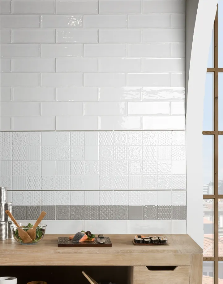 Испанская, глянцевая плитка Esencia Сantonera Blanco Brillo 1.2*20 прямоугольной формы,