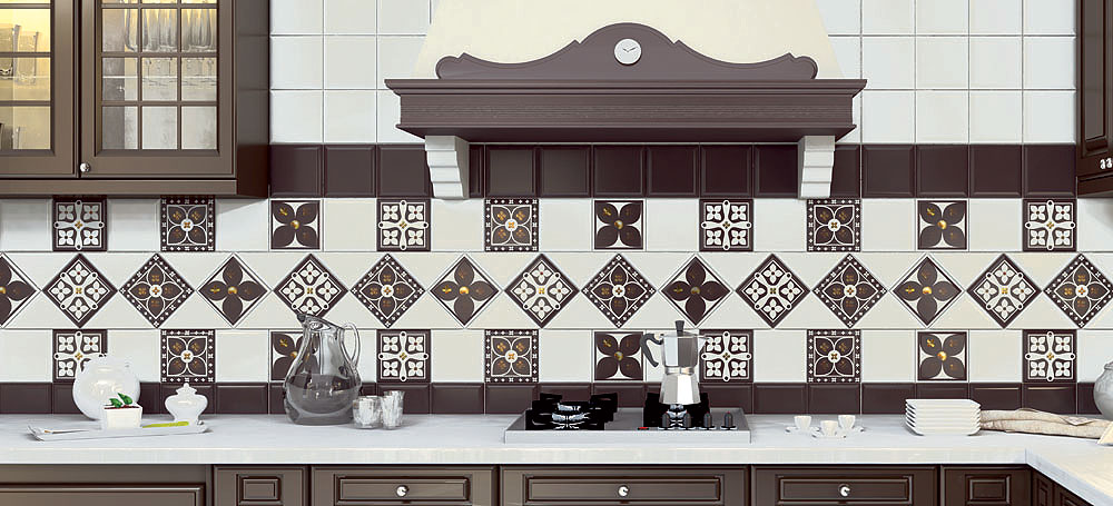 размера 15x15, белого цвета. Данный вид плитки, с метлахским рисунком,