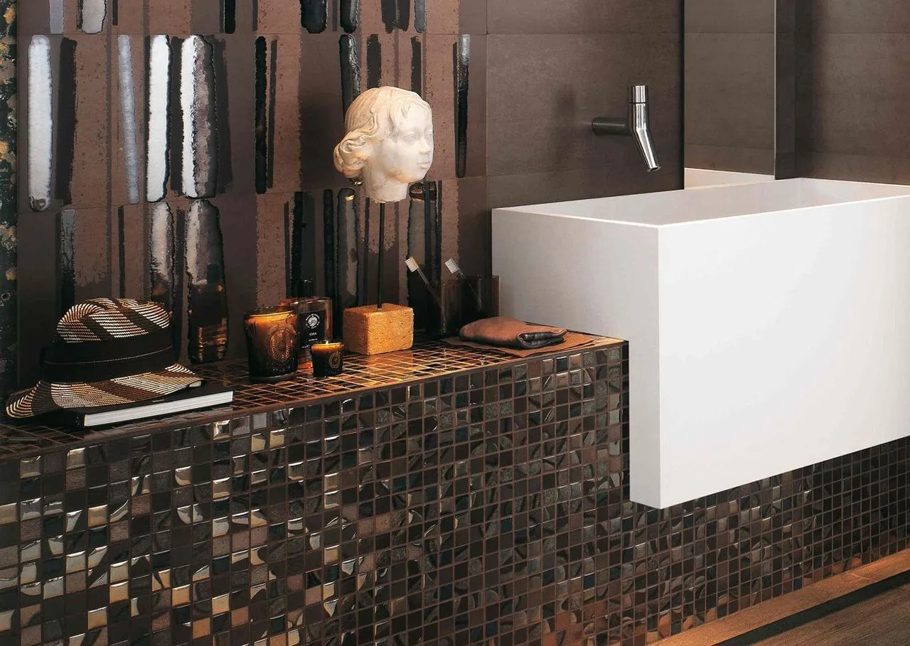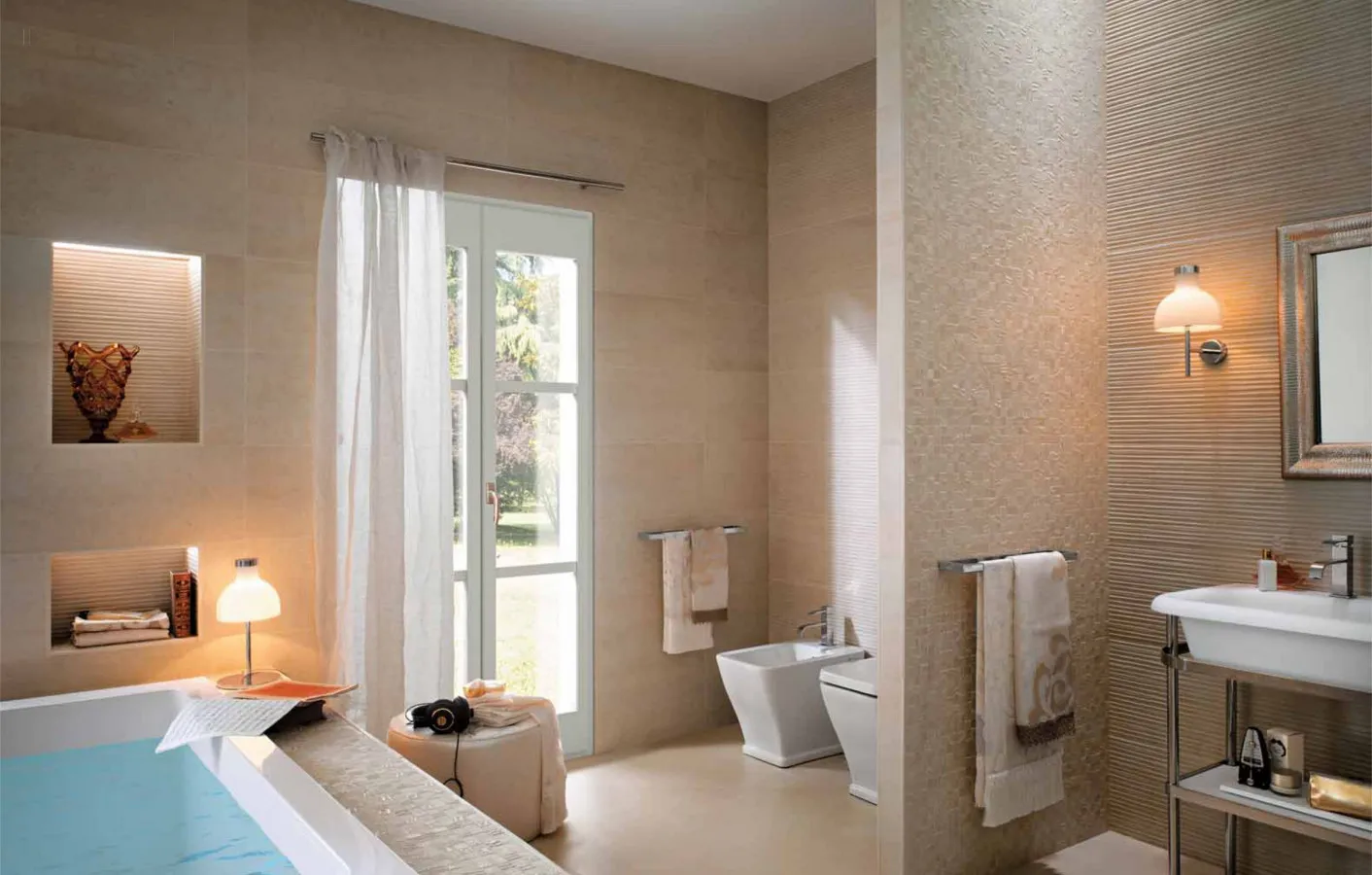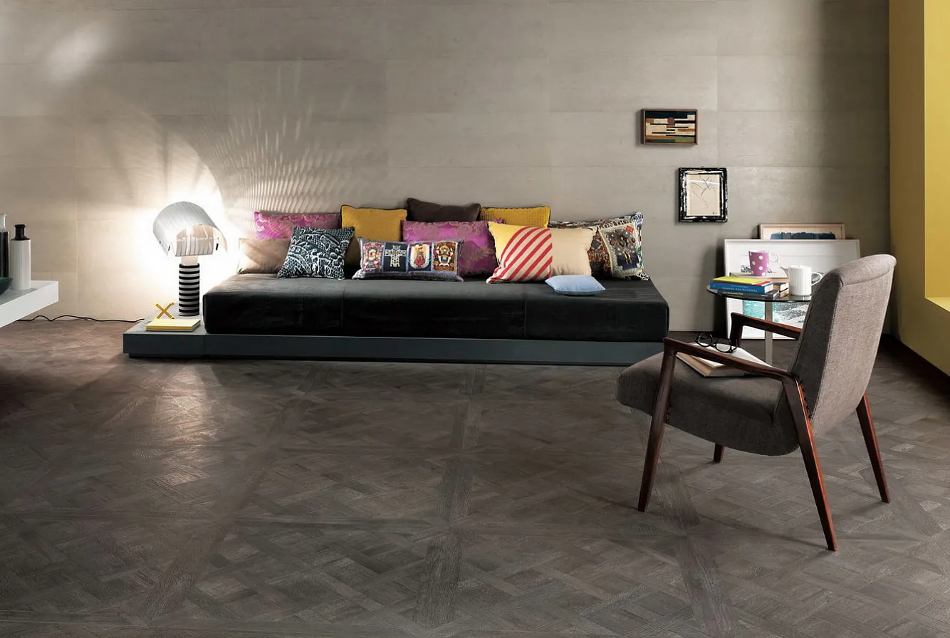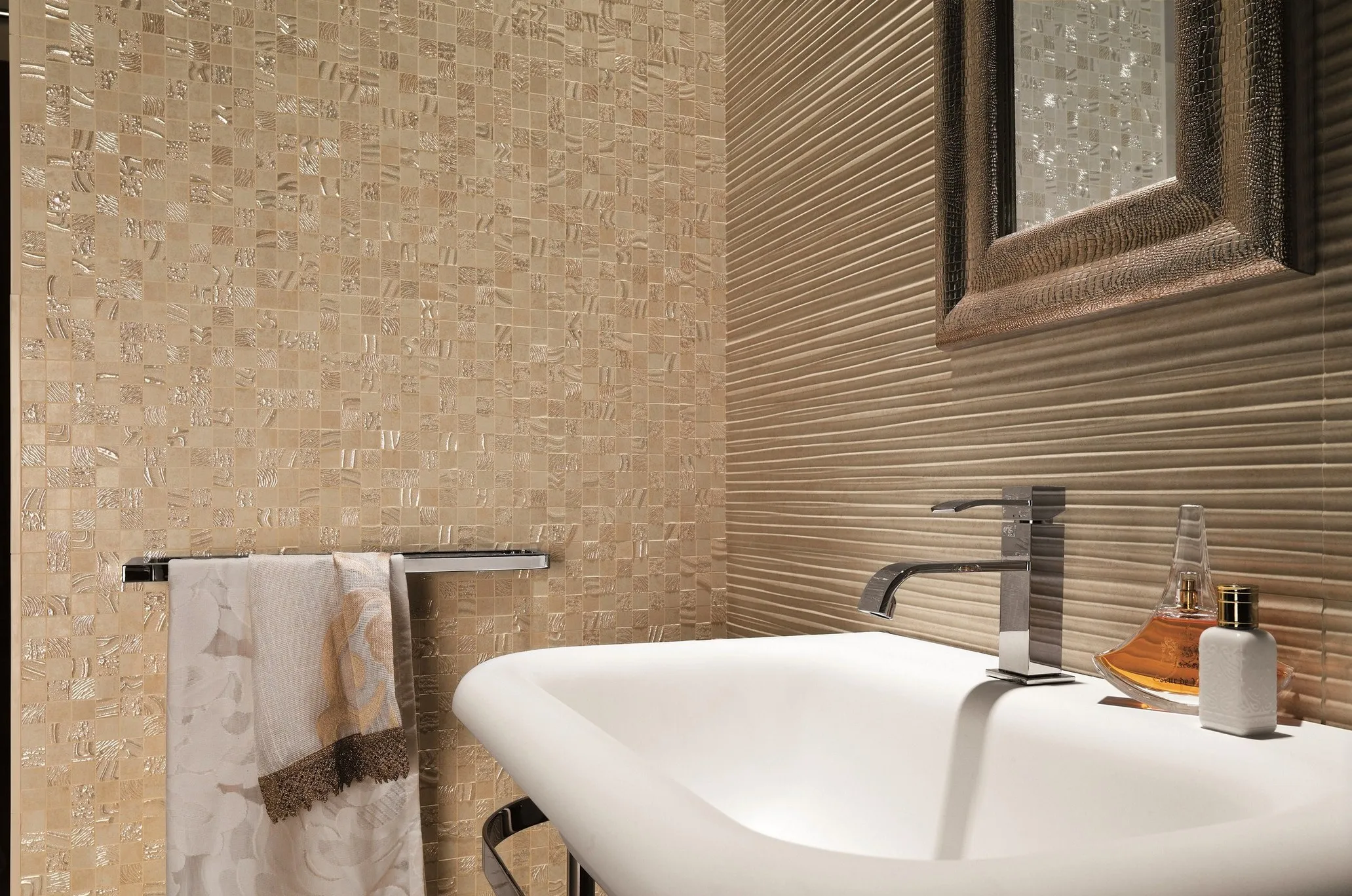 Итальянская, полуматовая плитка fKRU Meltin Epoca Sabbia Inserto 30,5*91,5 RT прямоугольной формы,
