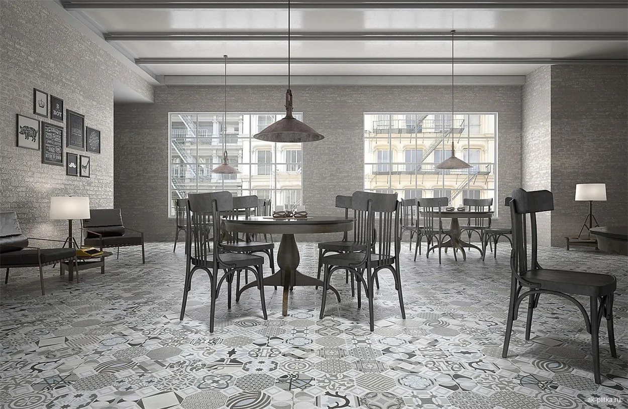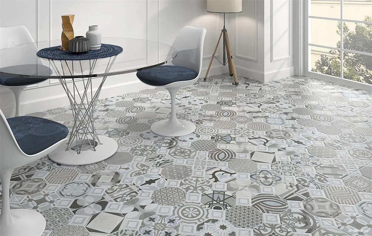 размера 60x60, серого цвета. Данный вид плитки, с рисунком пэчворк,