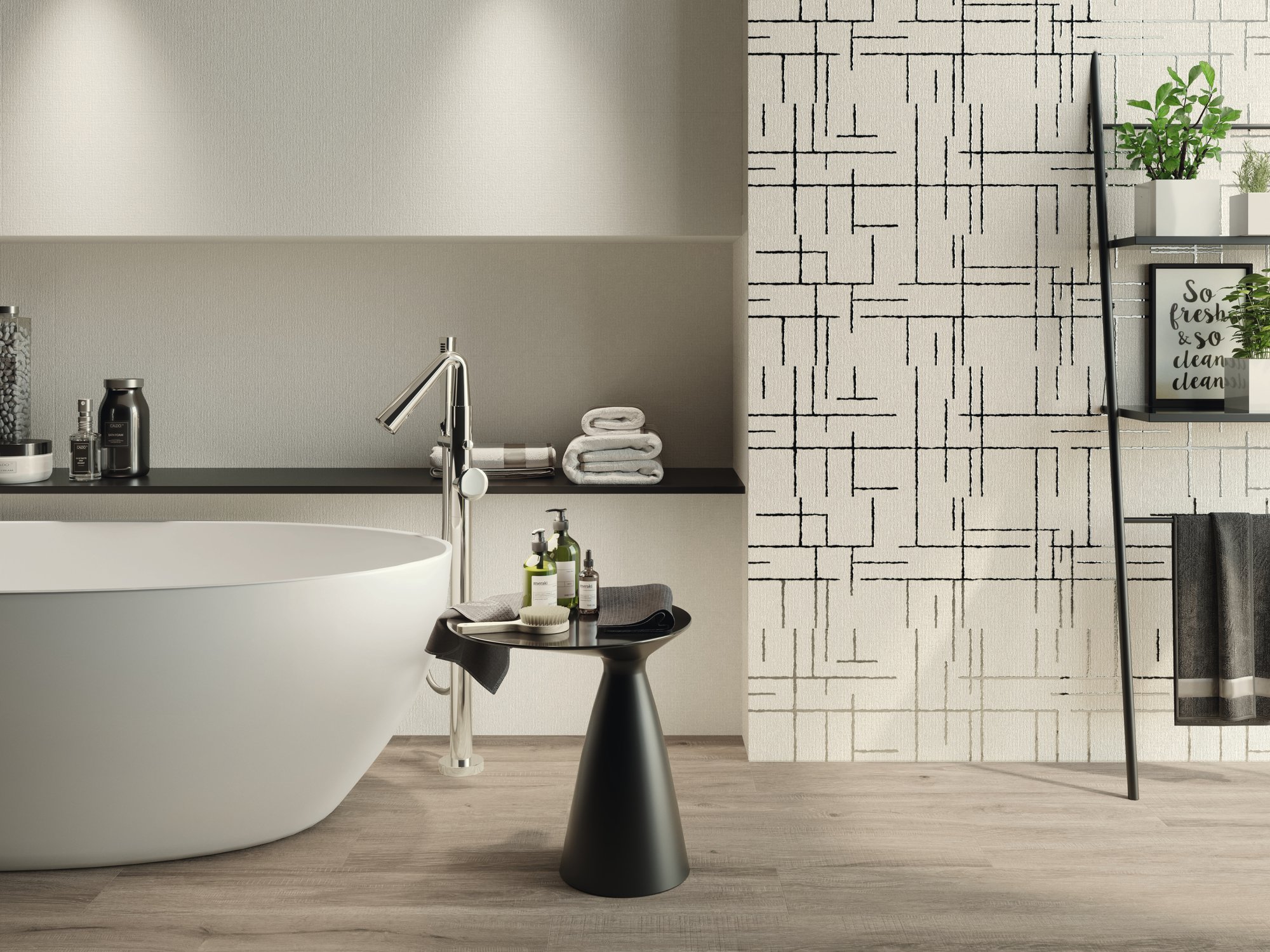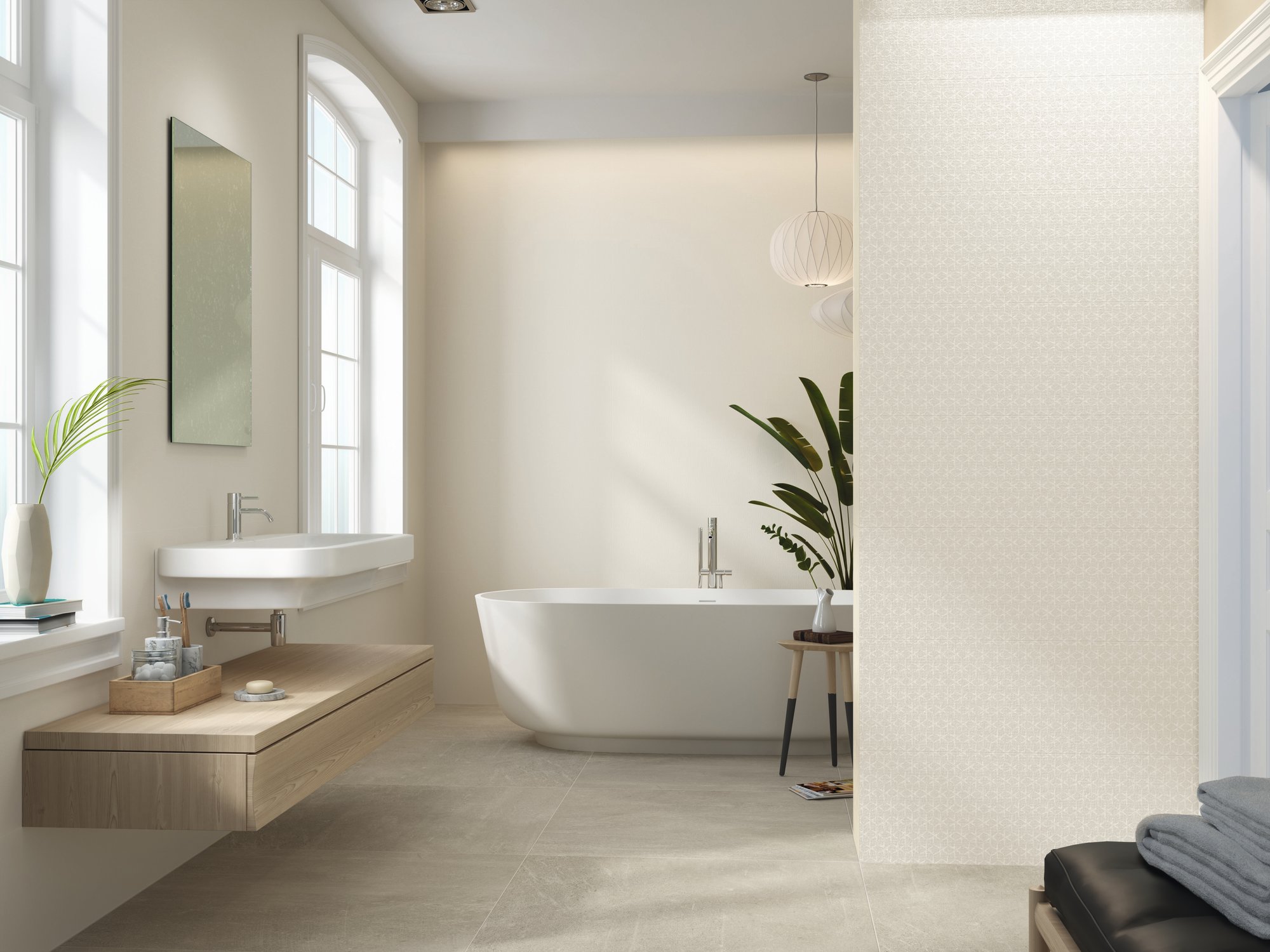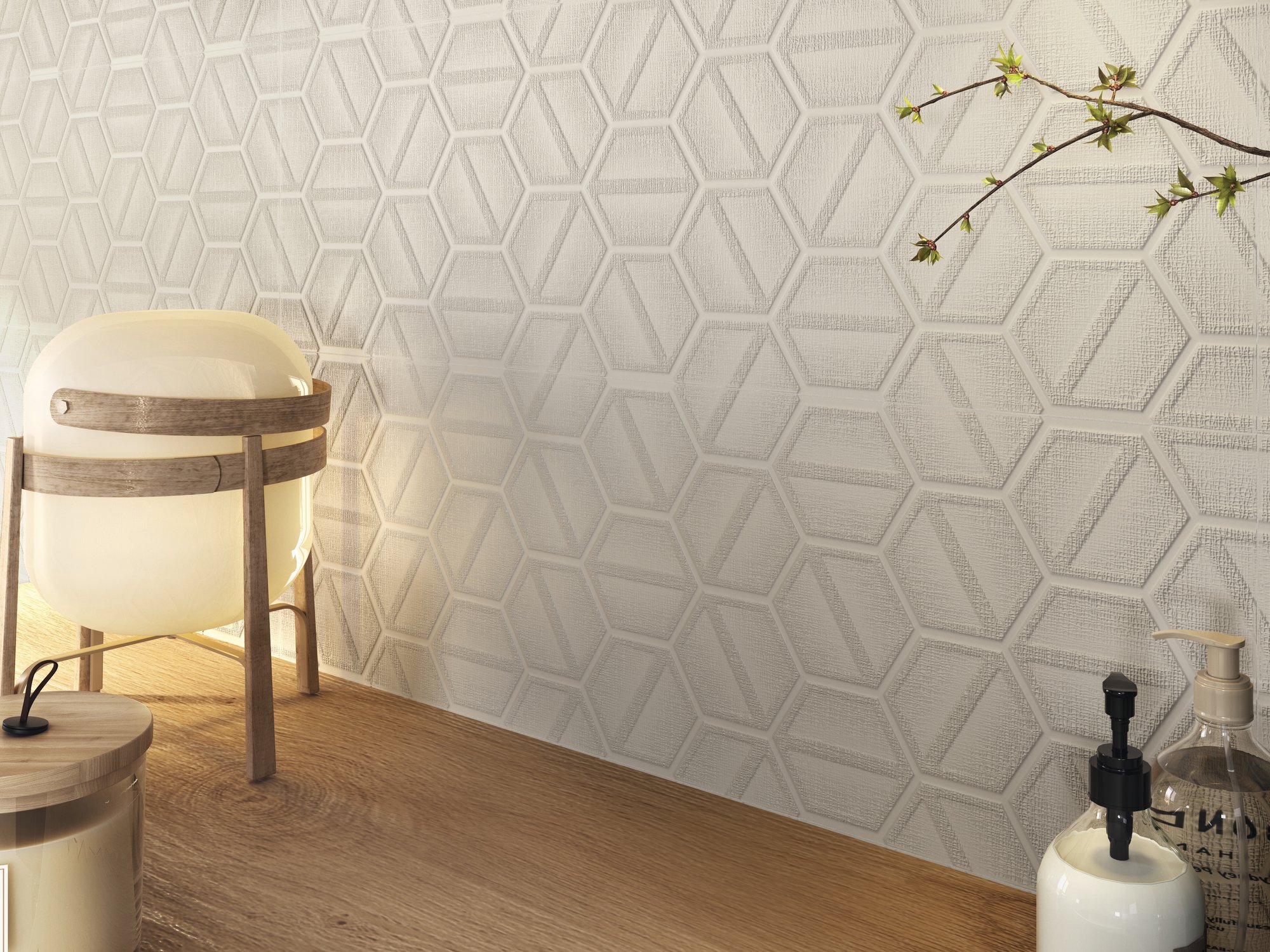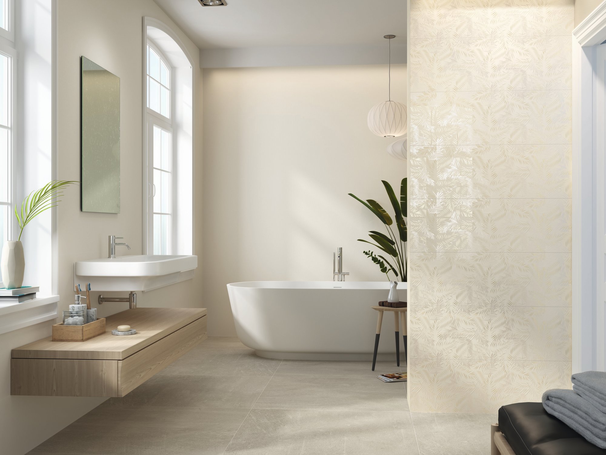 размера 30x90, бежевого цвета. Данный вид плитки, имитирующий обои,