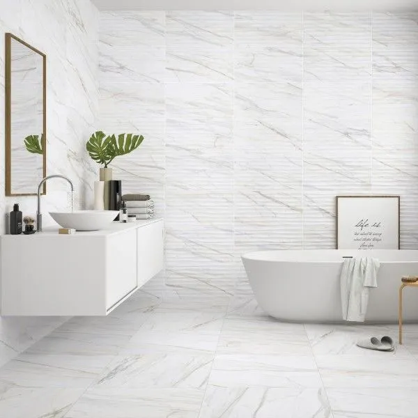 размера 33.3x90, белого цвета. Данный вид плитки, имитирующий камень,