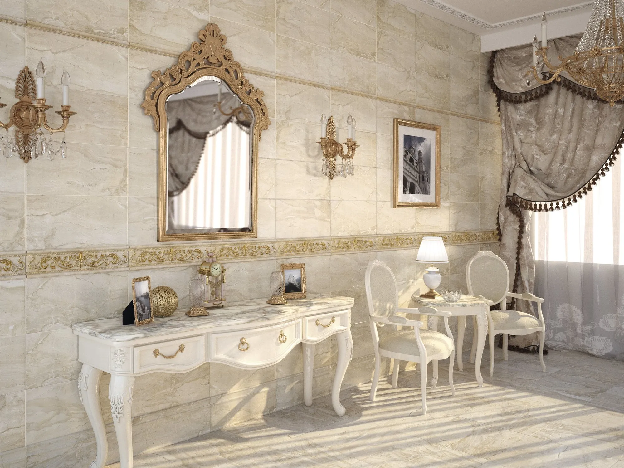 размера 13x50, золотого цвета. Данный вид плитки, с оригинальным орнаментом,