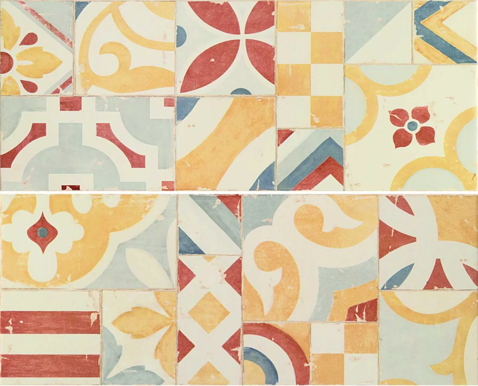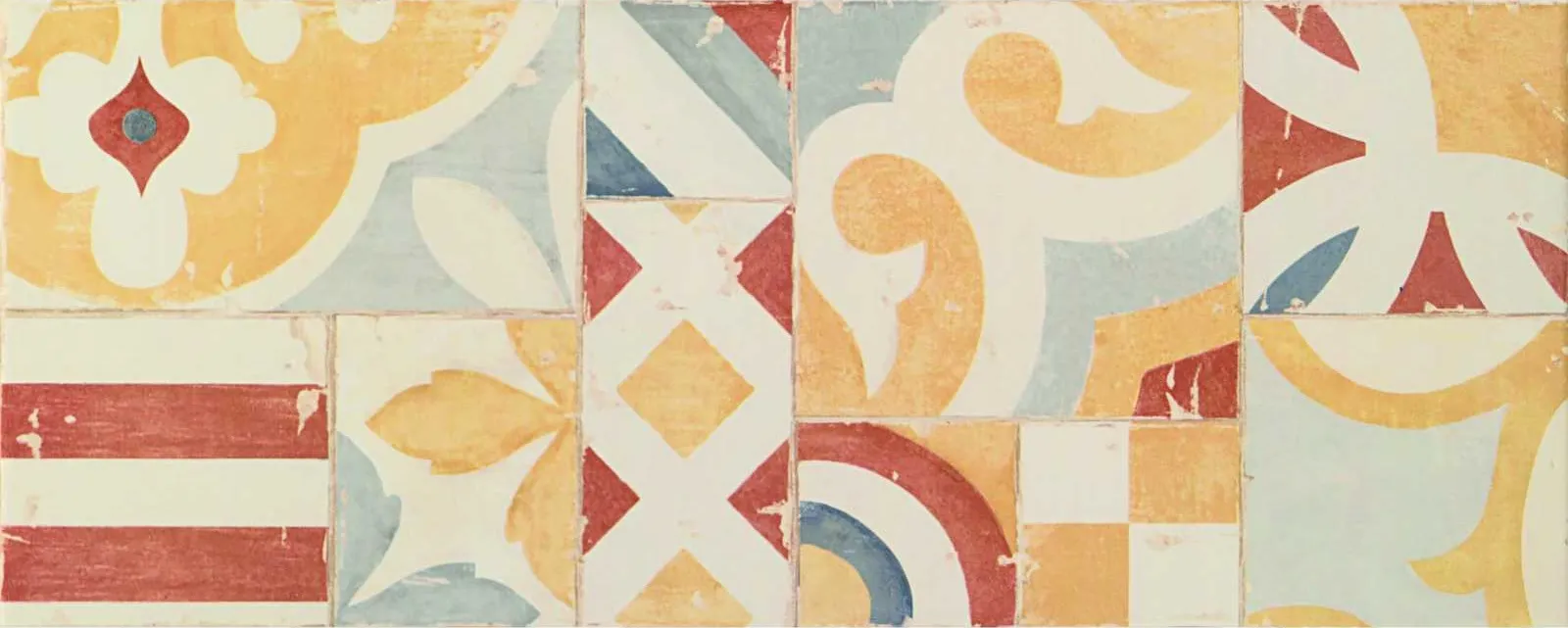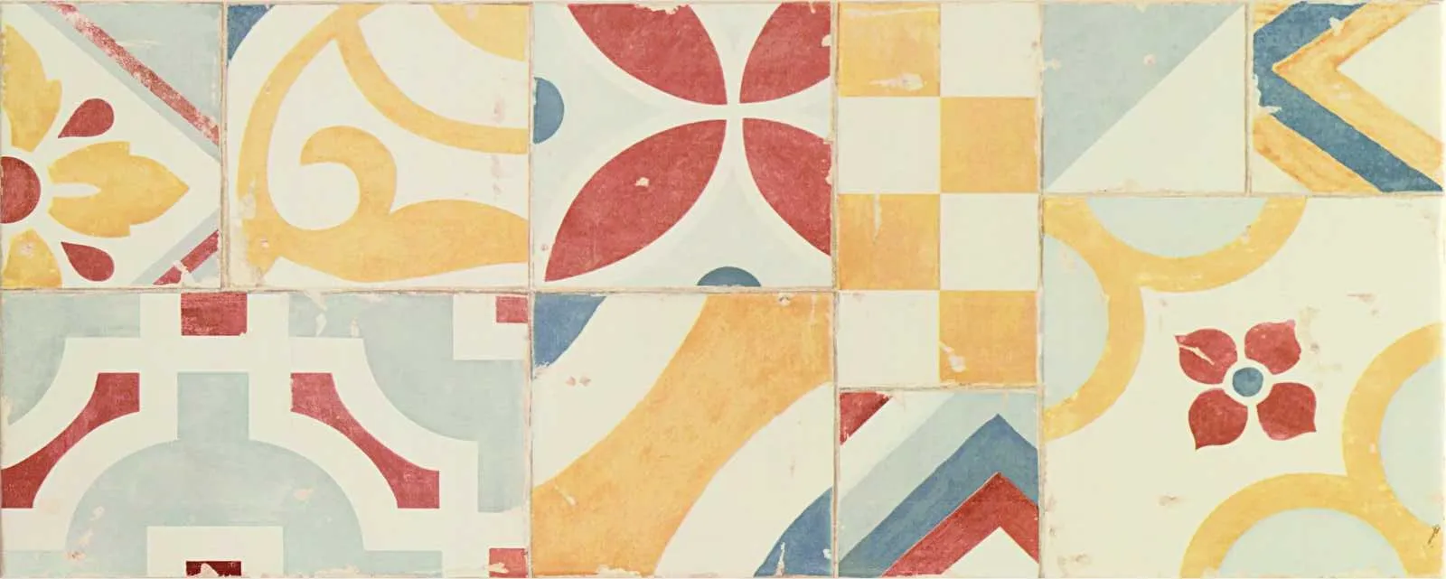размера 20x50, жёлтого цвета. Данный вид плитки, с рисунком пэчворк,