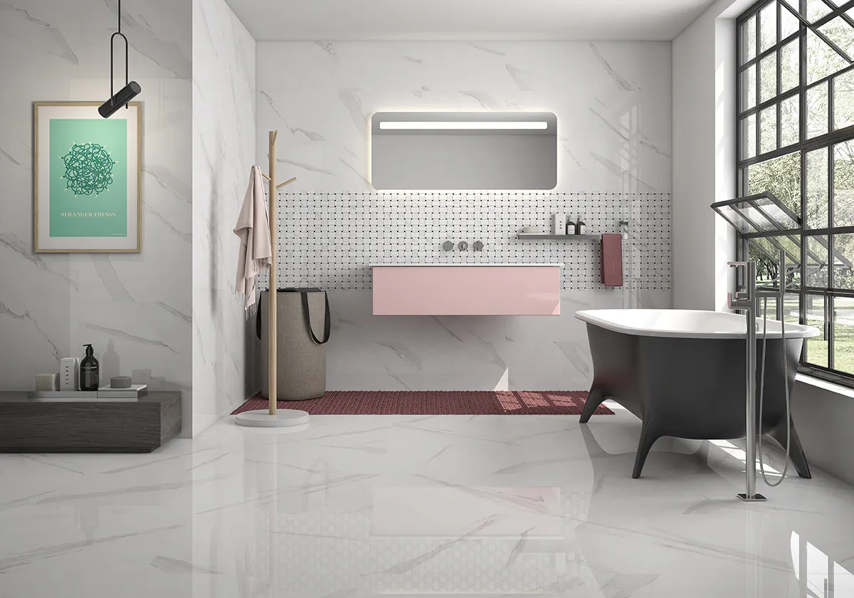 размера 33.3x50, белого цвета. Данный вид плитки, имитирующий камень,
