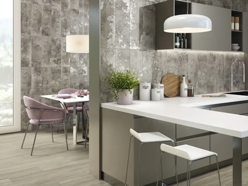размера 20x60, белого цвета. Данный вид плитки, имитирующий камень,