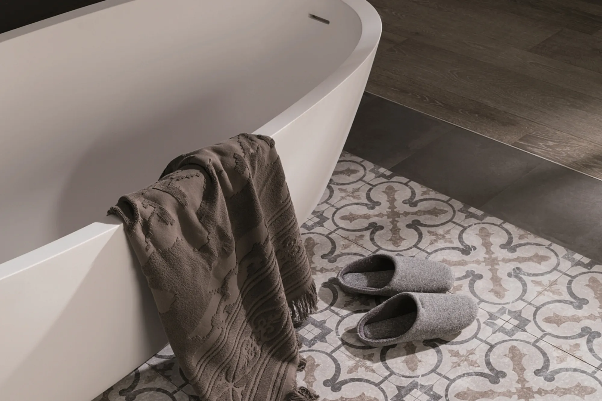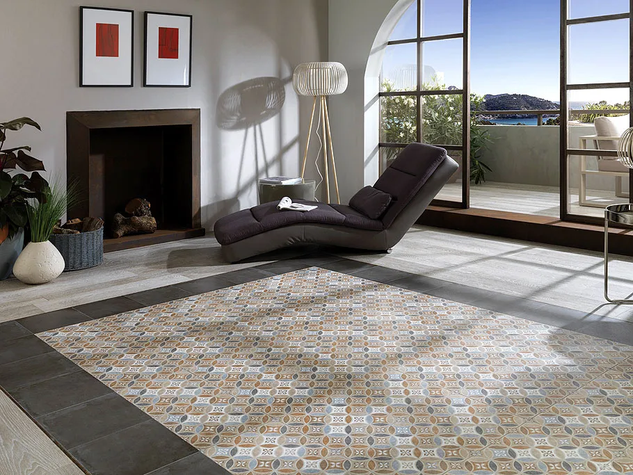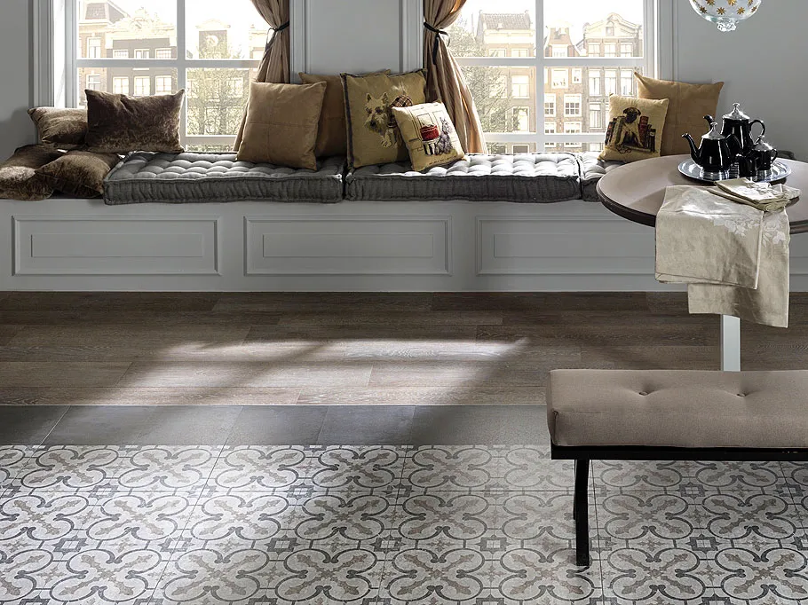 размера 59.6x59.6, серого цвета. Данный вид плитки, с рисунком пэчворк,