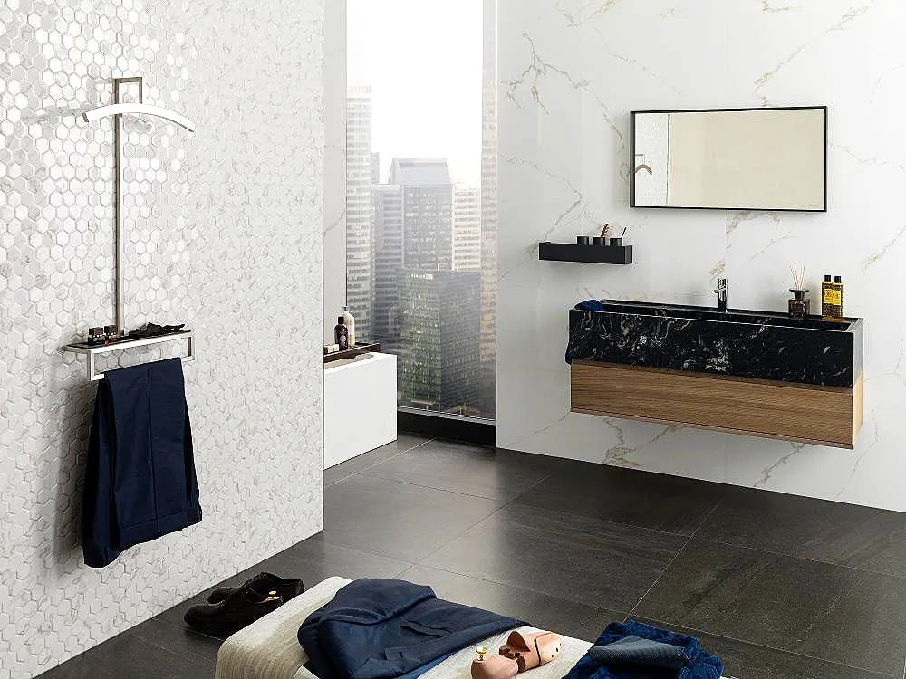 размера 120x45, белого цвета. Данный вид плитки, имитирующий камень,