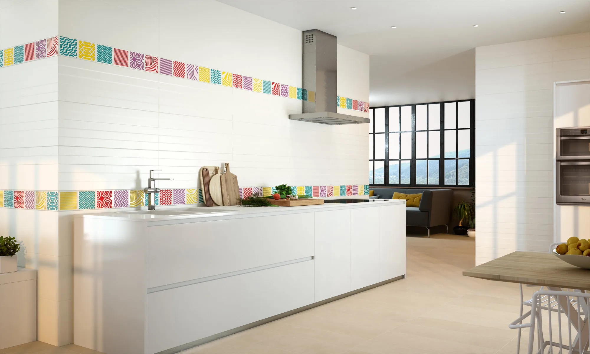 Испанская, матовая плитка Панно Albi Blanco Garden 126,4x90 прямоугольной формы,