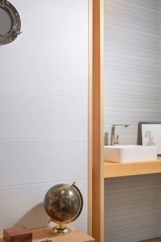 размера 25x70, белого цвета. Данный вид плитки, с рисунком в виде полос,