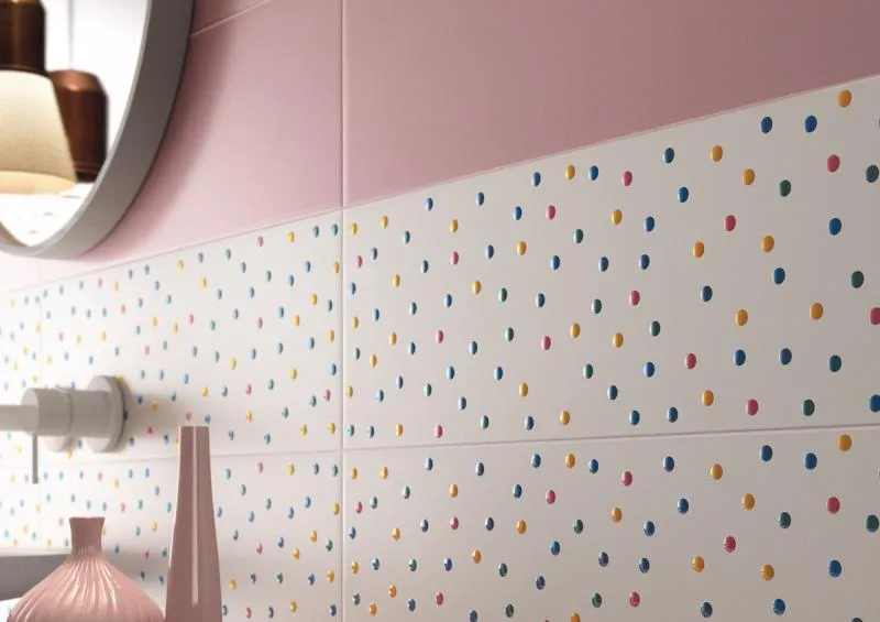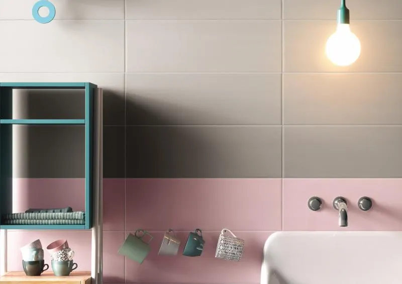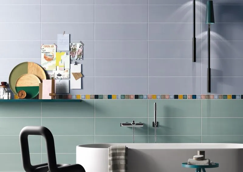 размера 60x5, бирюзового цвета. Данный вид плитки, имитирующий мозаику,