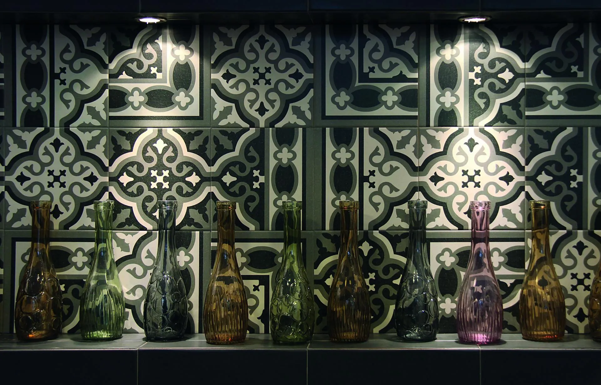 размера 20x20, чёрного цвета. Данный вид плитки, с метлахским рисунком,