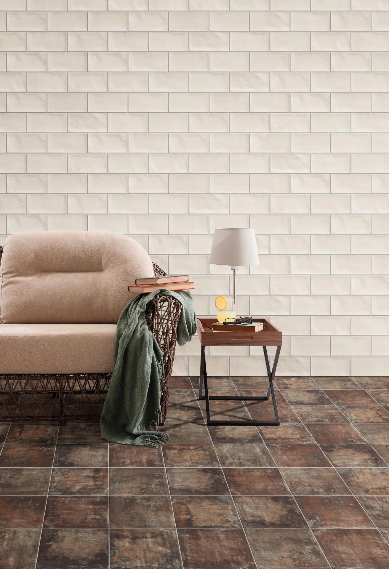 размера 5x20, оранжевого цвета. Данный вид плитки, имитирующий камень,
