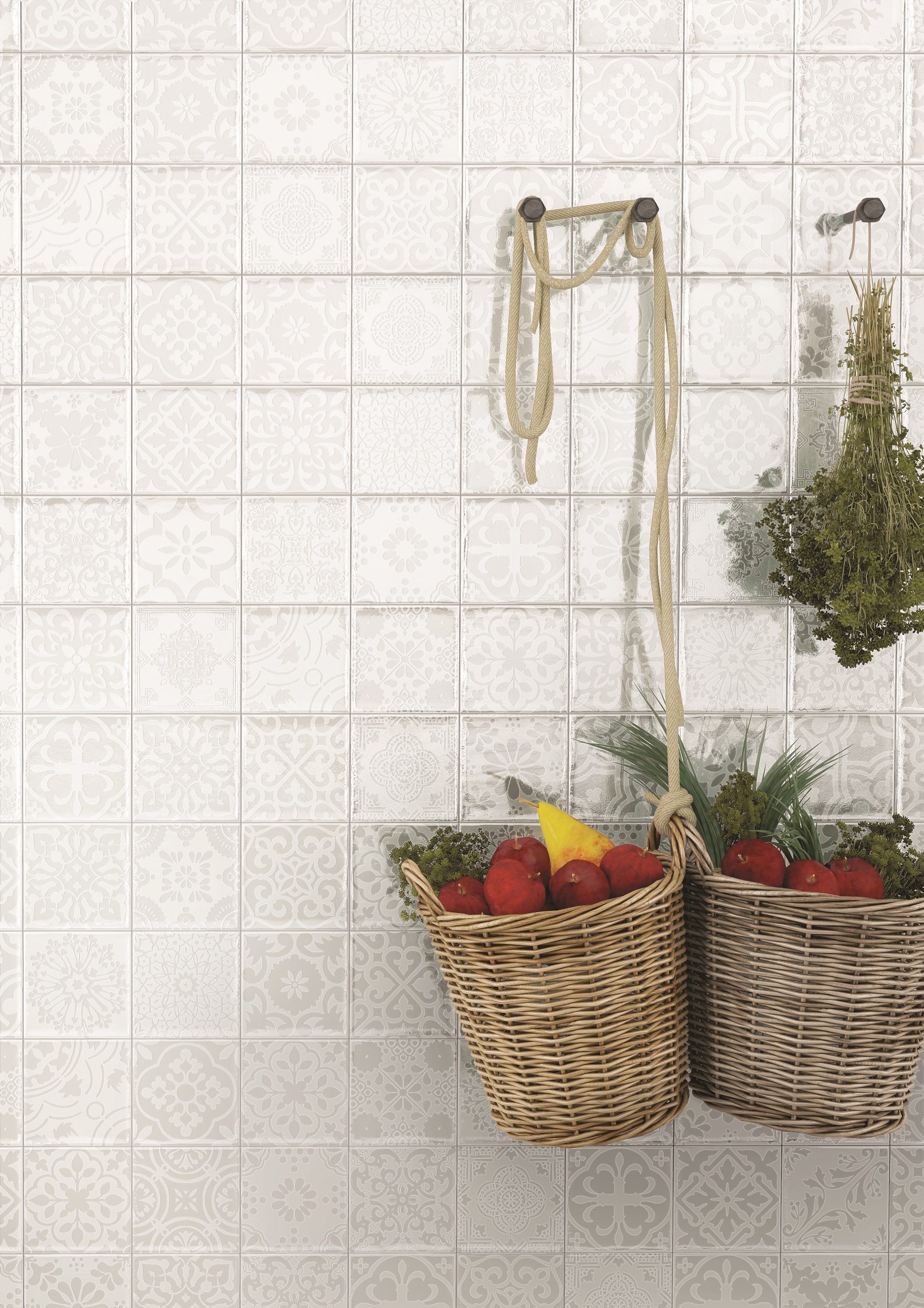 размера 10x20, белого цвета. Данный вид плитки, с оригинальным орнаментом,