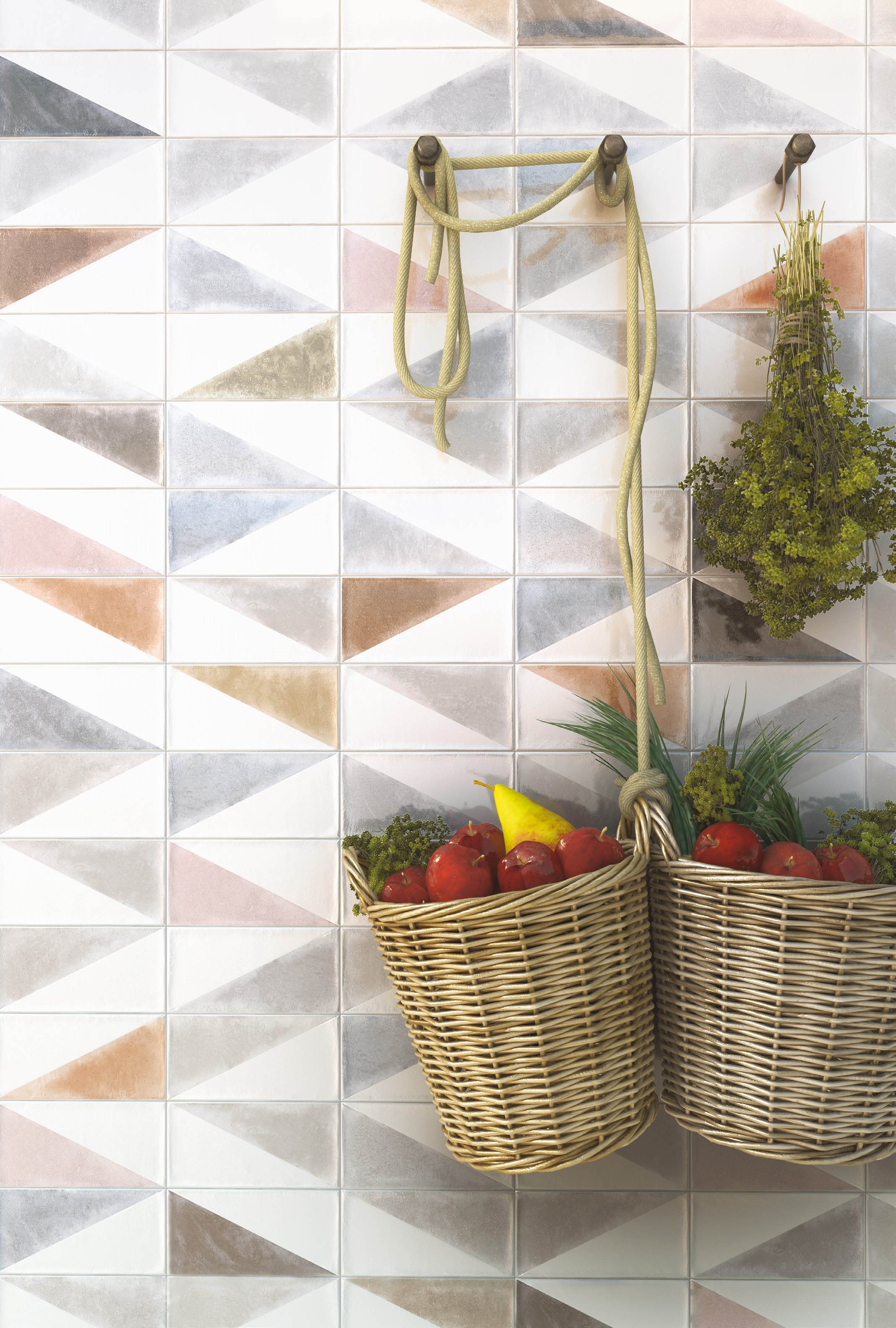 Испанская, глянцевая плитка Rabari Multicolor Mix 10x20 прямоугольной формы,