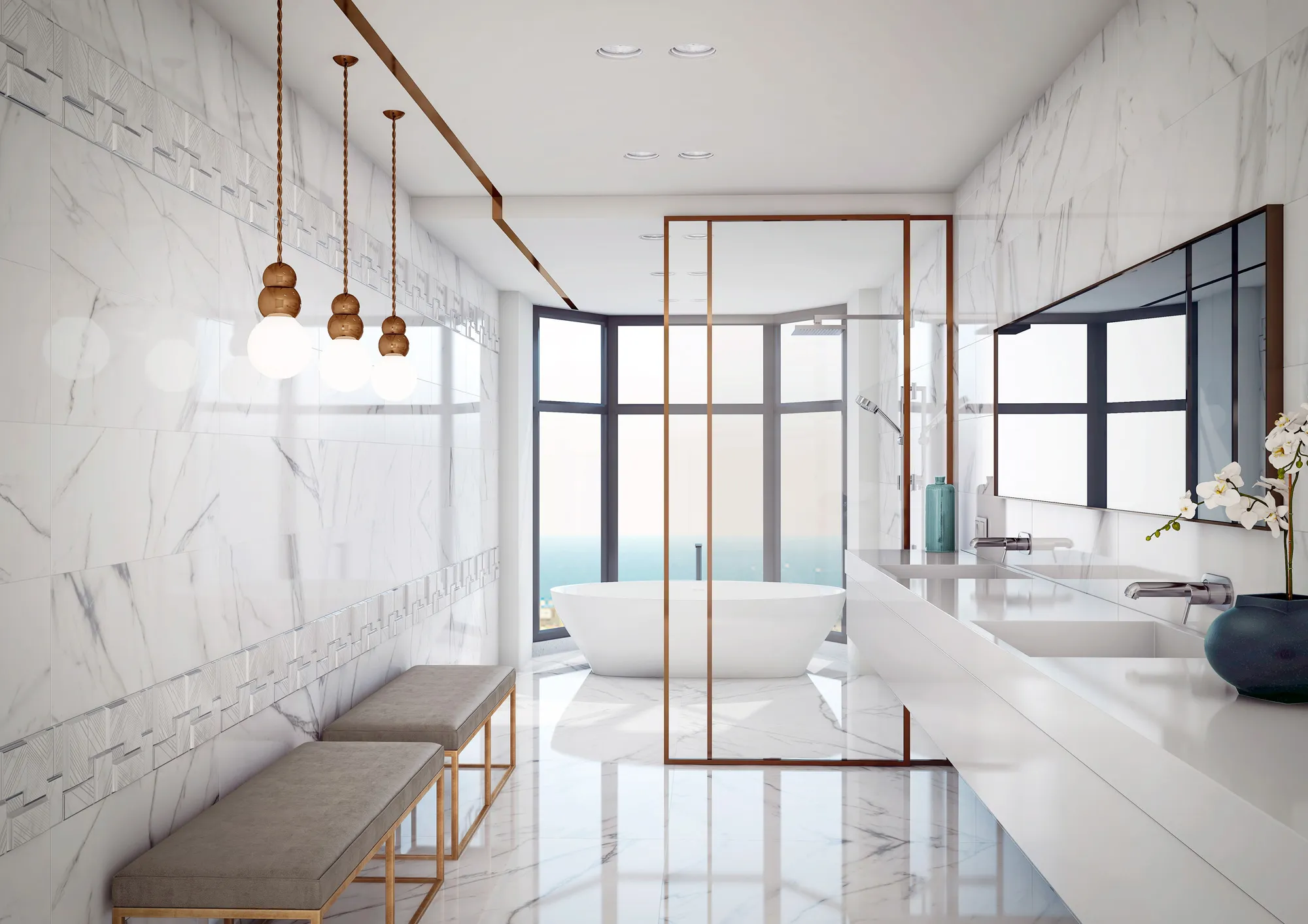 Испанская, глянцевая плитка VARENNA CARRARA Rect. 30*90 прямоугольной формы,