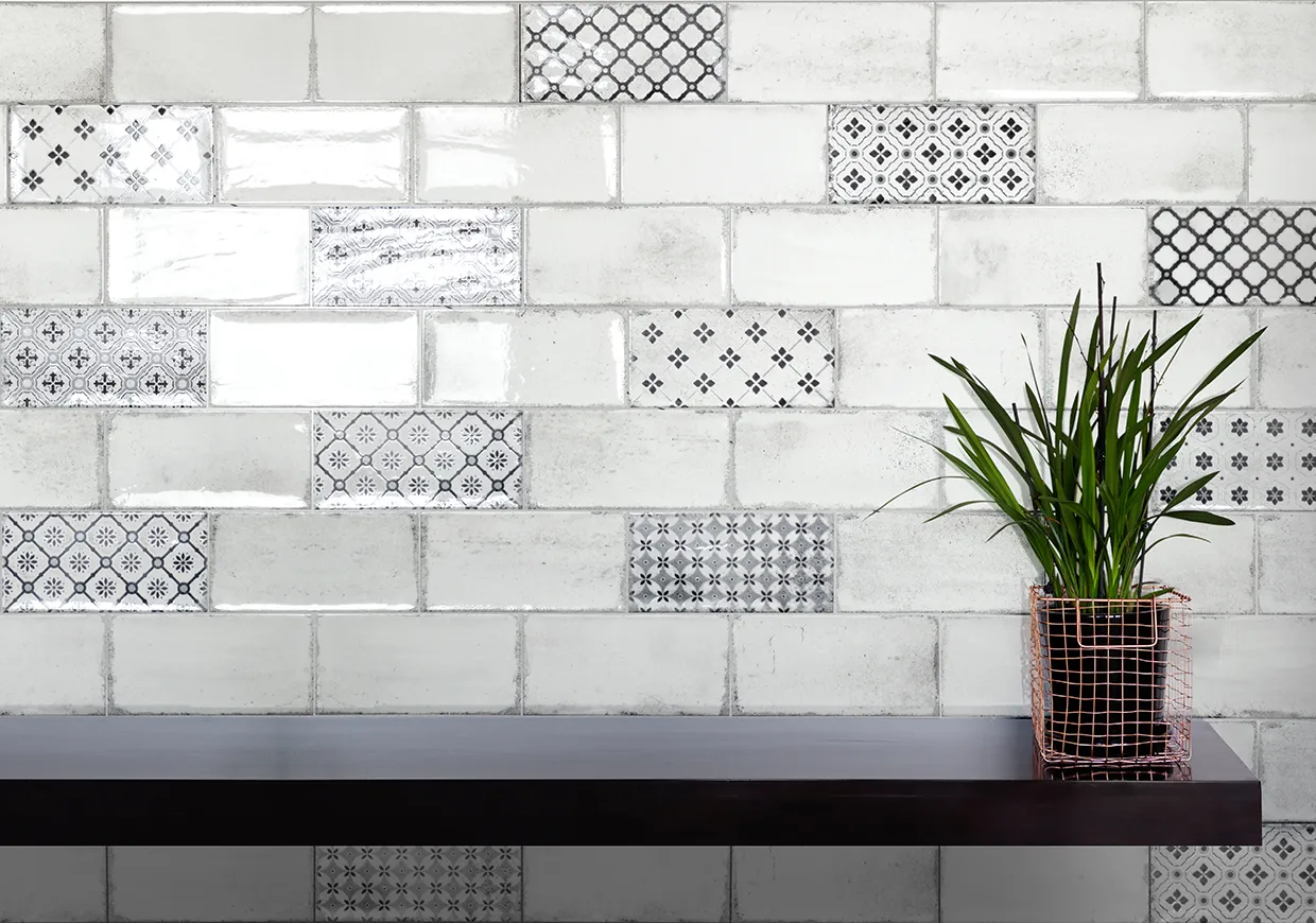 размера 20x8, голубого цвета. Данный вид плитки, с оригинальным орнаментом,