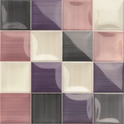 Испанская, глянцевая плитка Volumen Lucciola Viola Mix 20*20 квадратной формы,