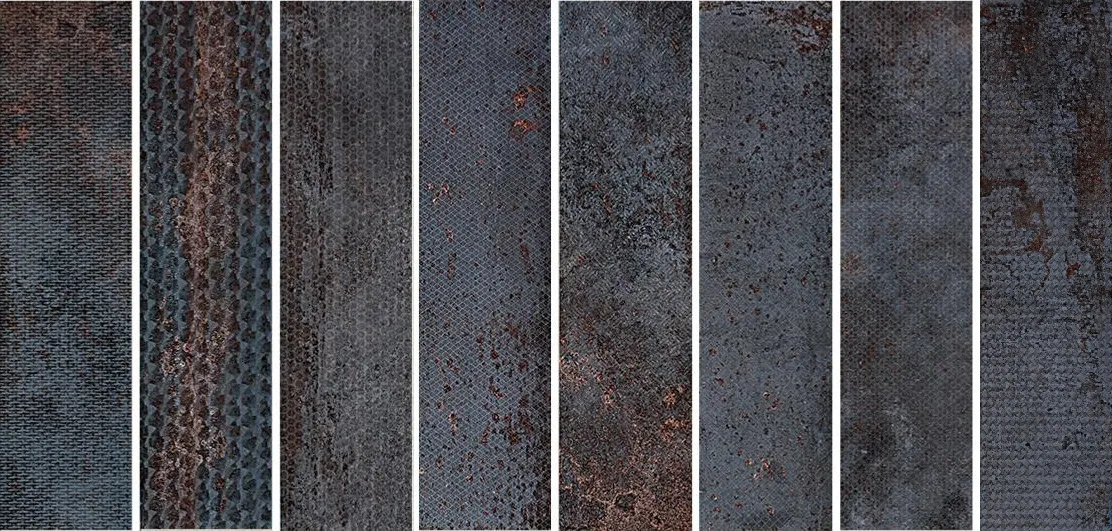 Итальянский, натуральный керамогранит 1062817 Costruire Metallo Strong Mix Nero 30х120 прямоугольной формы,