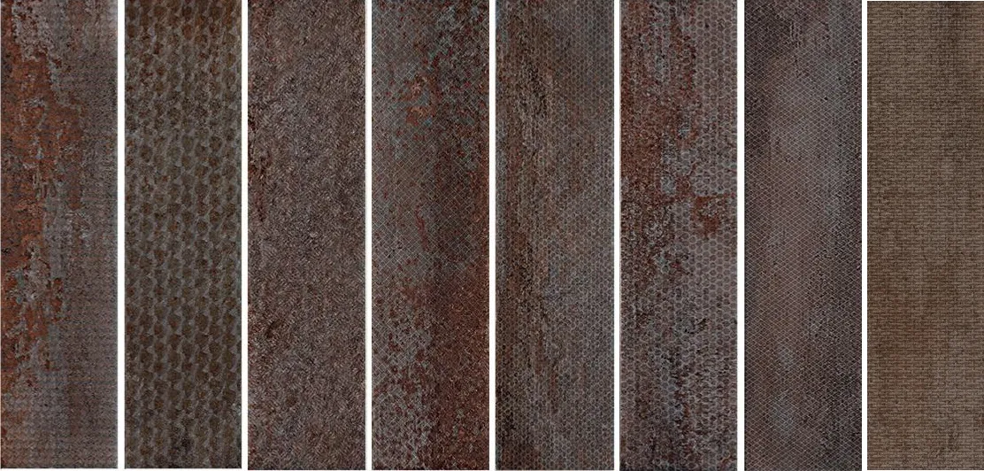 Итальянский, натуральный керамогранит 1062818 Costruire Metallo Strong Mix Ruggine 30х120 прямоугольной формы,