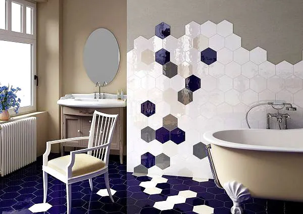 Испанский, глазурованный матовый керамогранит 20338 Hexatile Negro Mate 17.5*20 шестигранной формы,