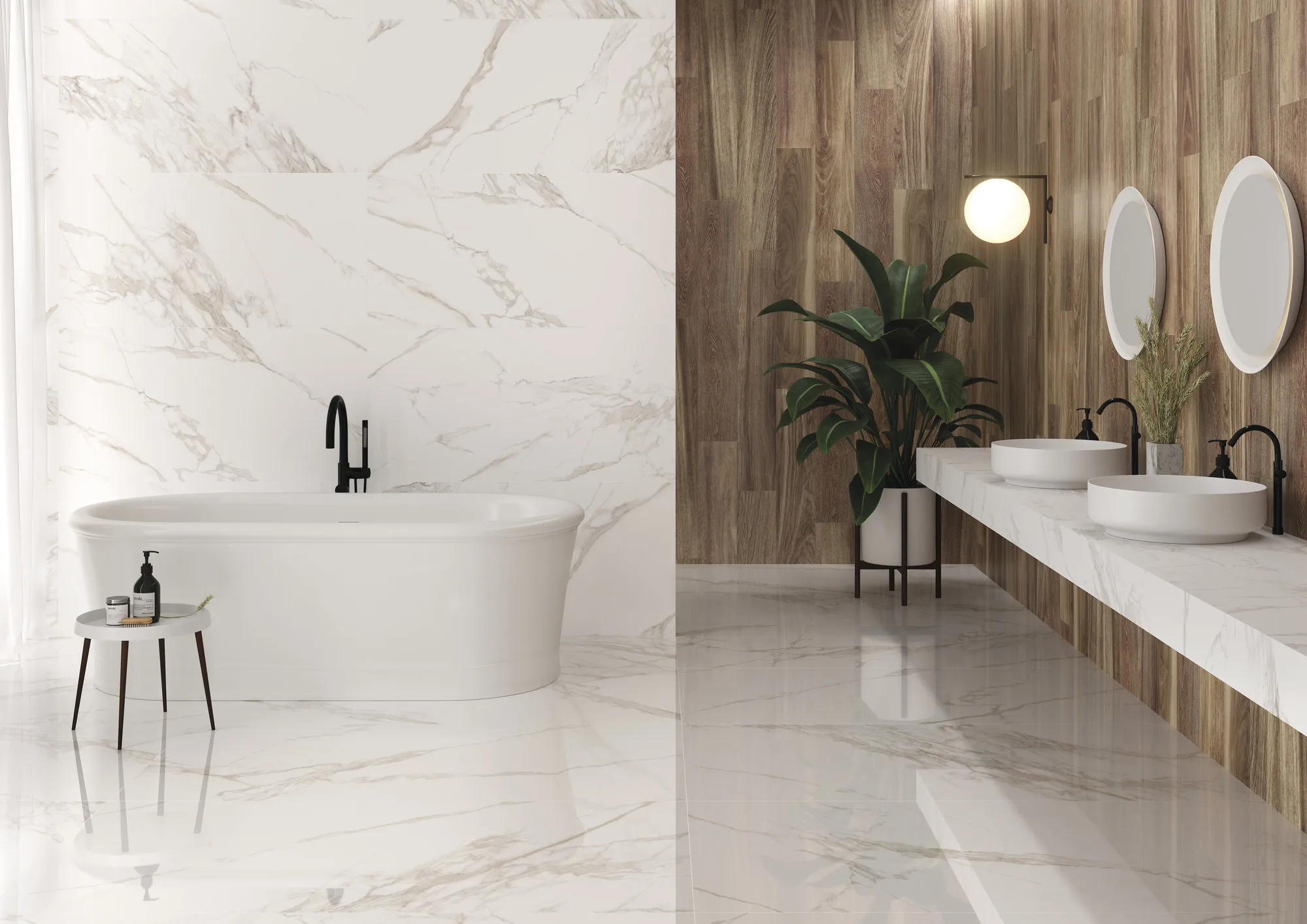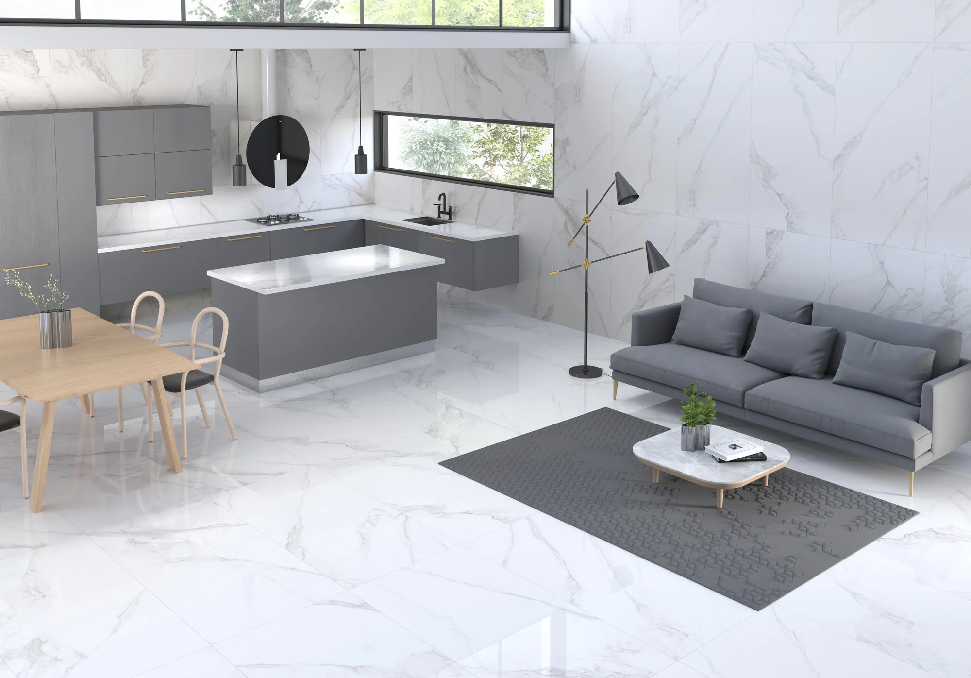 размера 151x75.5, белого цвета. Данный вид керамогранита, имитирующий камень,