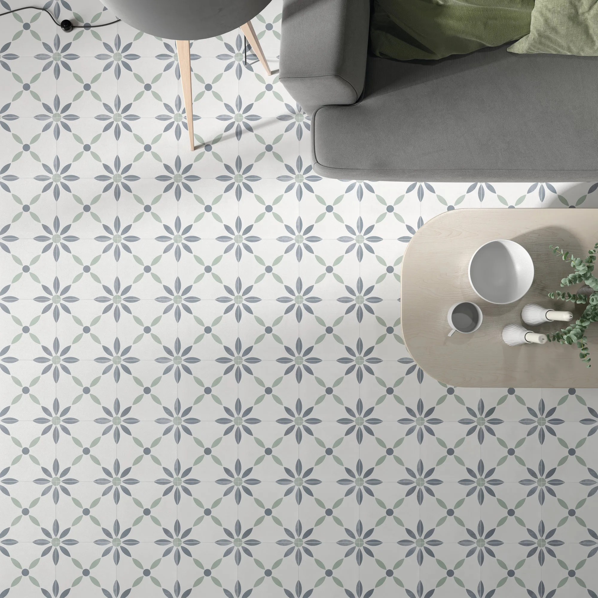 размера 22.3x22.3, белого цвета. Данный вид керамогранита, с оригинальным орнаментом,