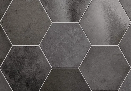 Испанский, глазурованный глянцевый керамогранит 24954 HERITAGE CARBON 17,5x20 шестигранной формы,