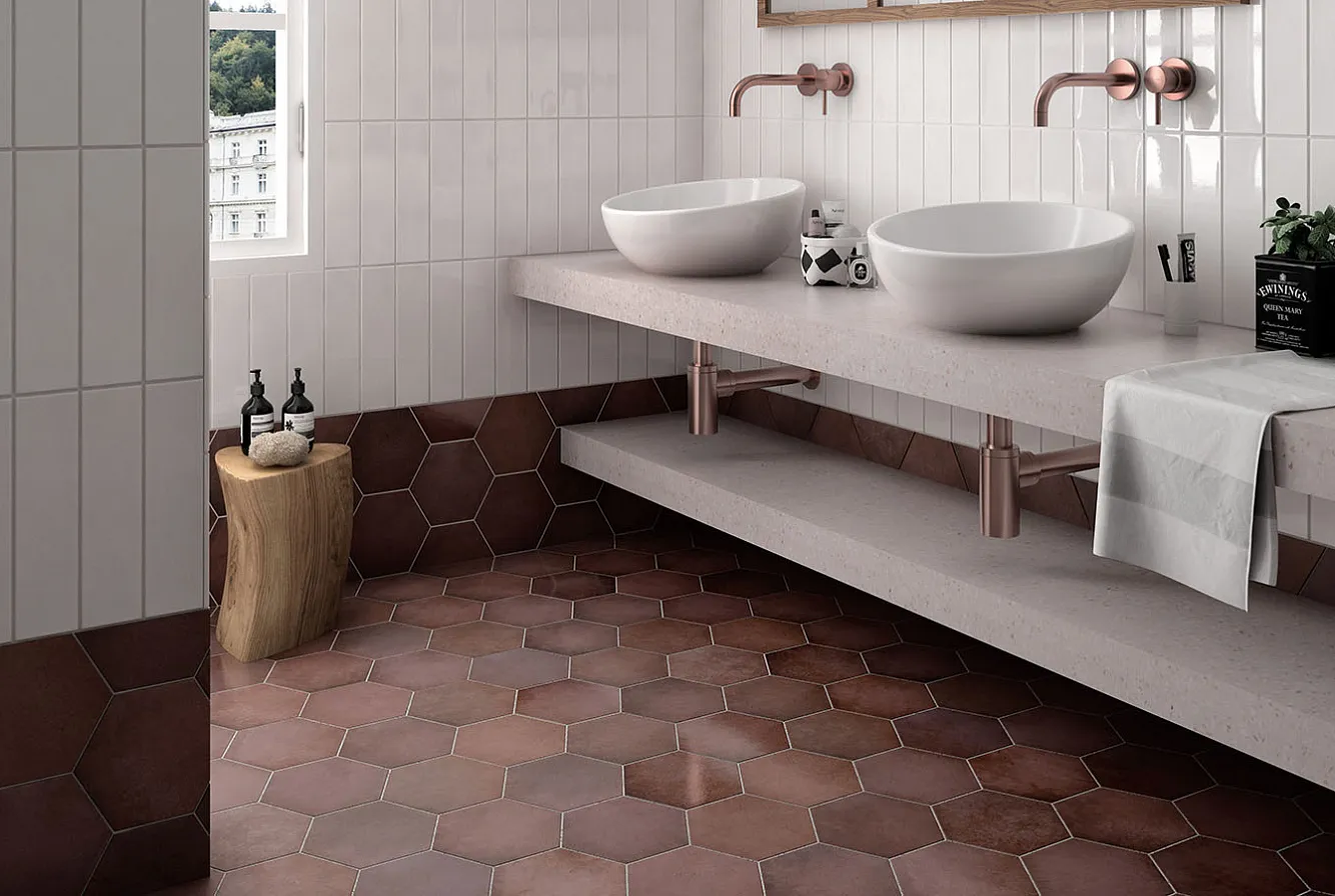 Испанский, глазурованный глянцевый керамогранит 24956 HERITAGE WINE 17,5x20 шестигранной формы,