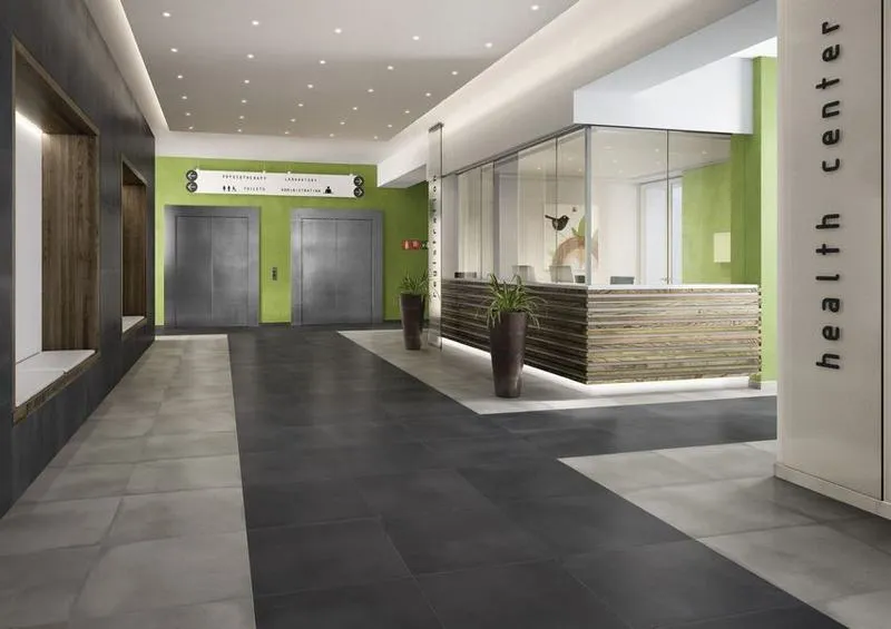 размера 60x60, бежевого цвета. Данный вид керамогранита, имитирующий бетон,