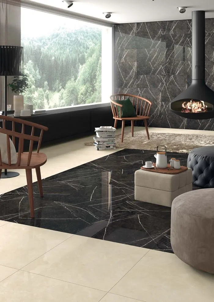 размера 59.3x59.3, чёрного цвета. Данный вид керамогранита, имитирующий камень,