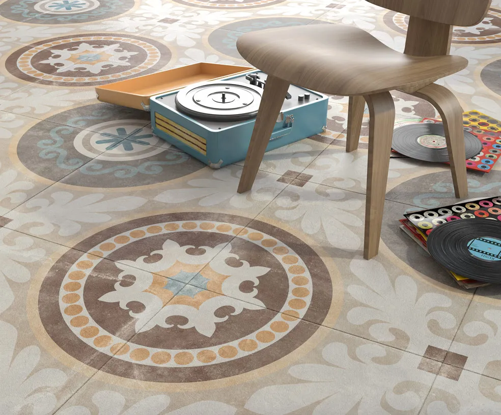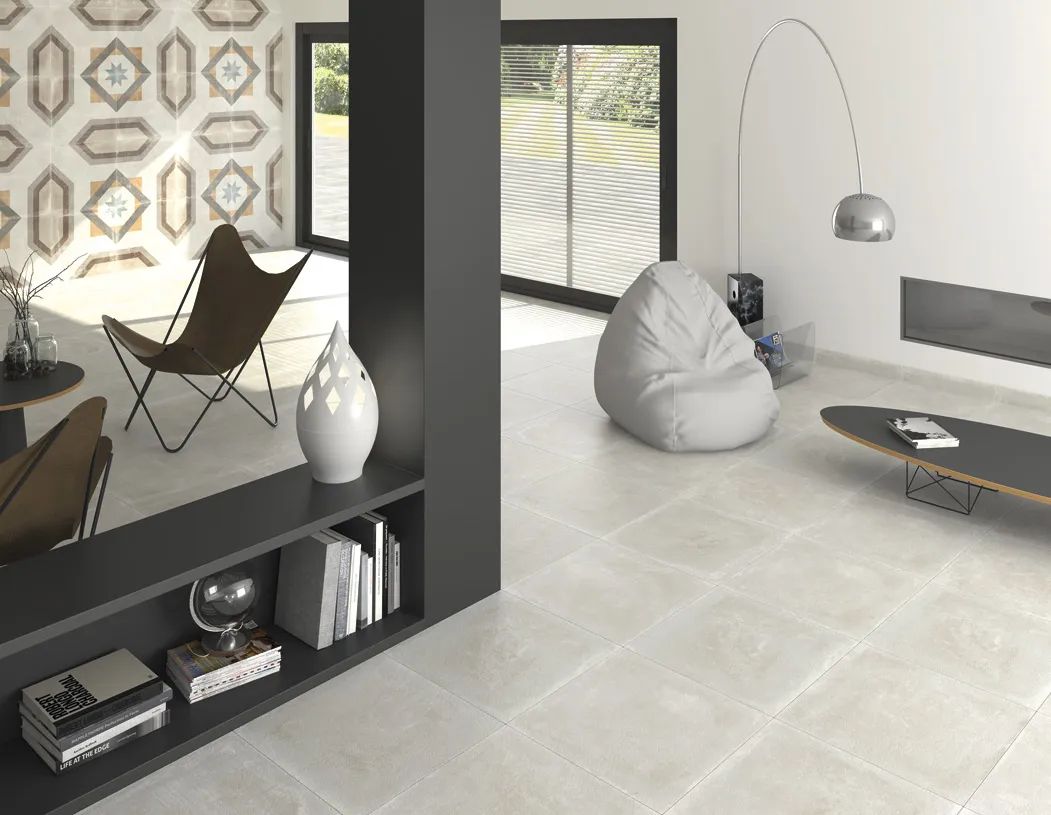 размера 80x80, кремового цвета. Данный вид керамогранита, имитирующий бетон,
