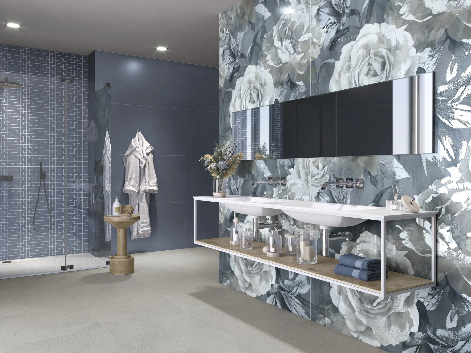 размера 60x120, синего цвета. Данный вид керамогранита, имитирующий камень,