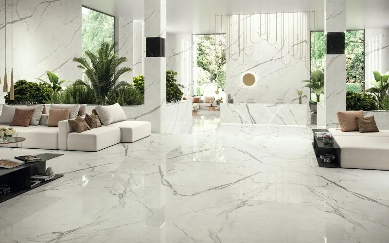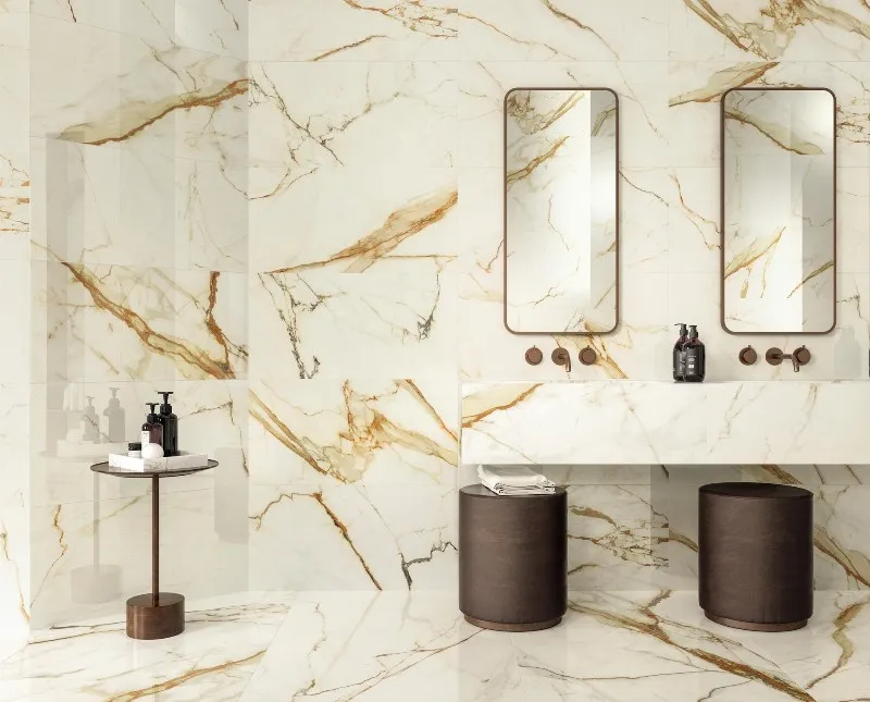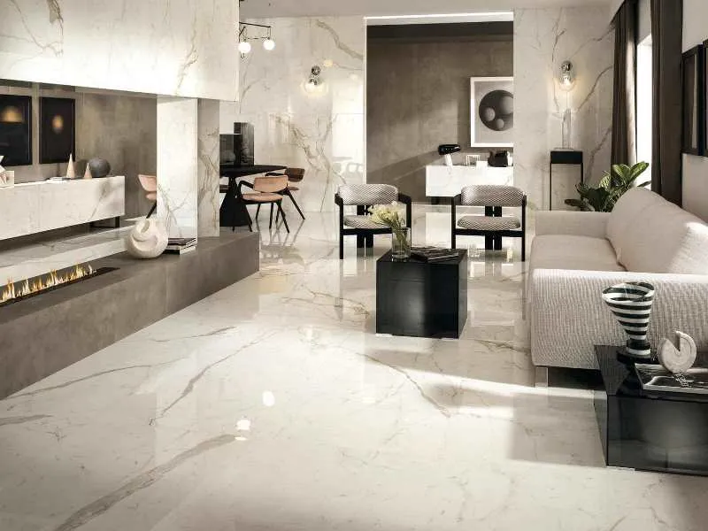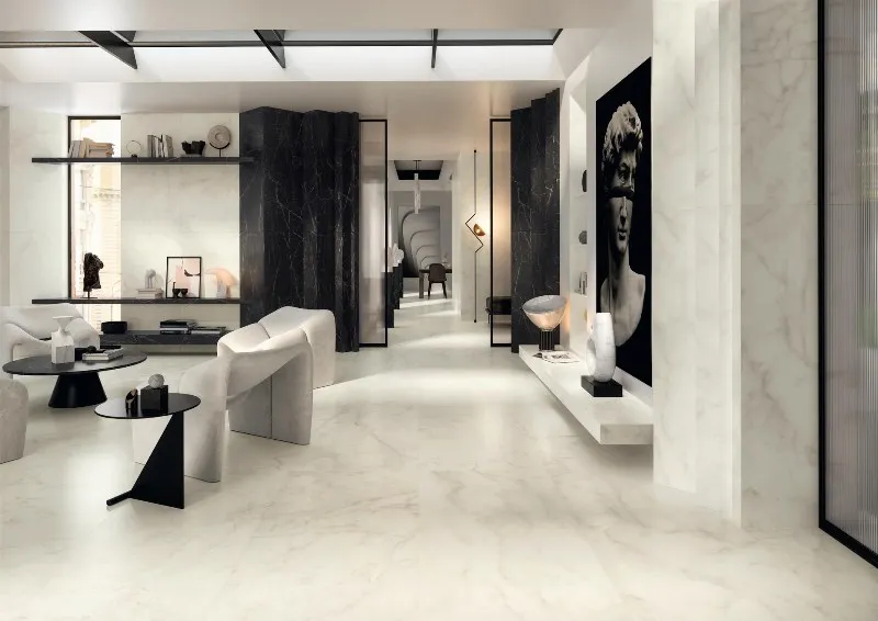 Итальянский, сатинированный керамогранит A3XB Marvel Calacatta Prestigio Silk 75x150 прямоугольной формы,