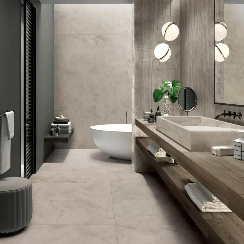 Итальянский, натуральный керамогранит PF60005862 ATLANTIS MOON RET 60x120 прямоугольной формы, размера 60x120, серого цвета. Данный вид керамогранита, имитирующий камень, подойдет для пола Вашей ванной.