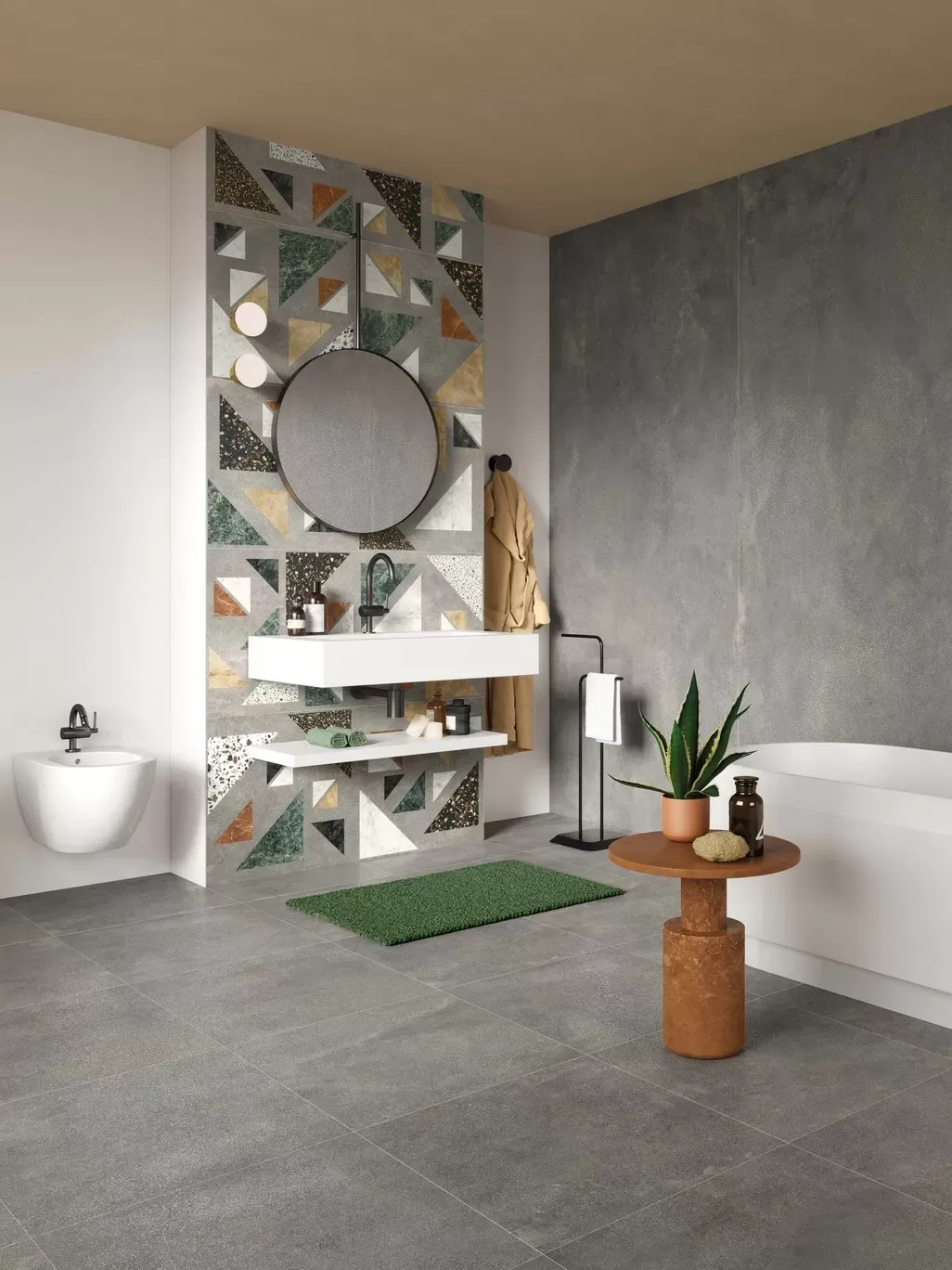 Итальянский, натуральный керамогранит PF60005797 Blend Concrete Ash Ret 60x120 прямоугольной формы, размера 120x60, серого цвета. Данный вид керамогранита, имитирующий бетон, подойдет для пола Вашей ванной.