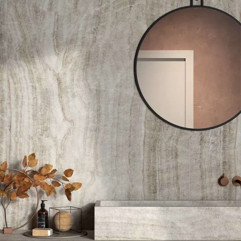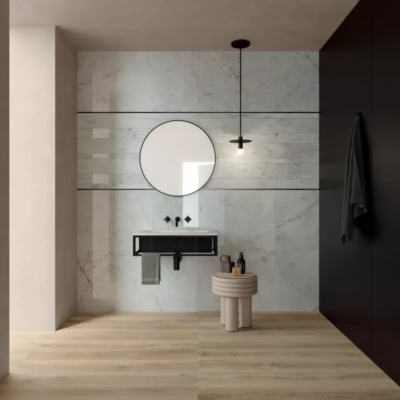 Итальянский, полированные керамогранит PF60008695 TITANIUM BLACK LUX R 120x280 прямоугольной формы, размера 280x120, чёрного цвета. Данный вид керамогранита, имитирующий камень, подойдет для пола Вашей ванной.